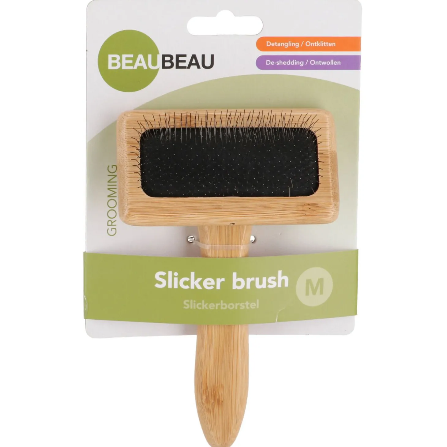 Deze veelzijdige slickerborstel biedt professionele vachtverzorging voor thuis. De gebogen draadharen zorgen voor effectieve verwijdering van klitten en losse haren, terwijl het duurzame bamboe handvat prettig in gebruik is. Perfect voor alle vachttypen en specifiek ontwikkeld voor diepe reiniging tot aan de ondervacht. Geef je hond de verzorging die hij verdient en bestel nu de BeauBeau Slickerborstel!
