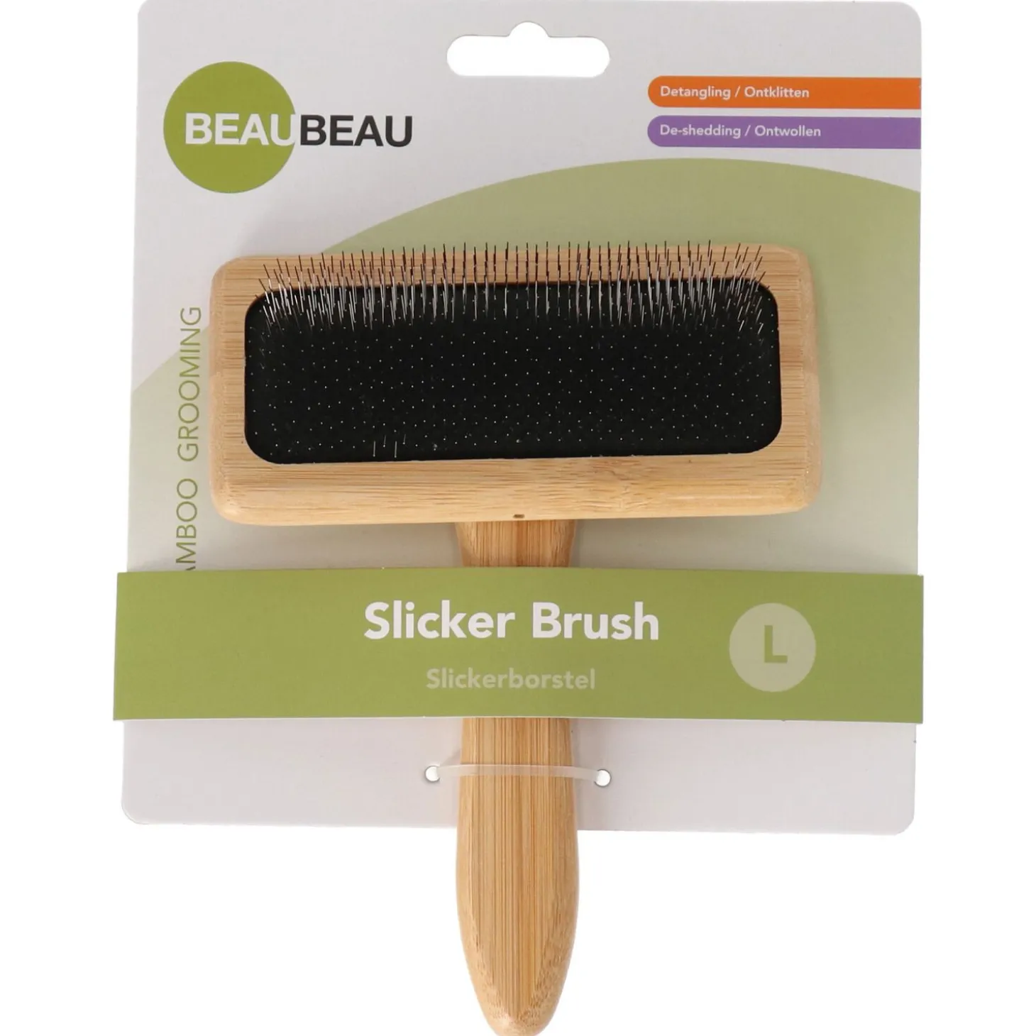 Deze veelzijdige slickerborstel biedt professionele vachtverzorging voor thuis. De gebogen draadharen zorgen voor effectieve verwijdering van klitten en losse haren, terwijl het duurzame bamboe handvat prettig in gebruik is. Perfect voor alle vachttypen en specifiek ontwikkeld voor diepe reiniging tot aan de ondervacht. Geef je hond de verzorging die hij verdient en bestel nu de BeauBeau Slickerborstel!