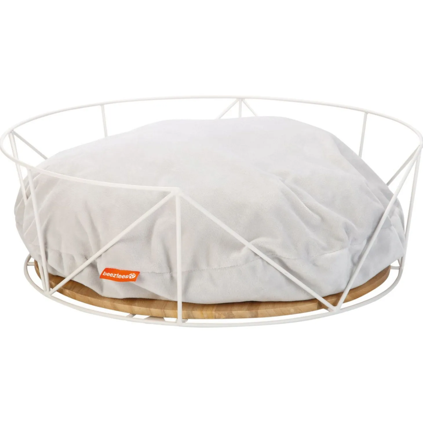 Deze trendy kattenmand bestaat uit een houten plateau met daarop een wit geometrisch draadstalen frame. Deze mand mag dan ook gezien worden. In het mandje ligt een heerlijk zacht wit kussentje waar je kat, of kleine hond, op kan slapen. Dit kussen kan je schoonmaken in de wasmachine.
