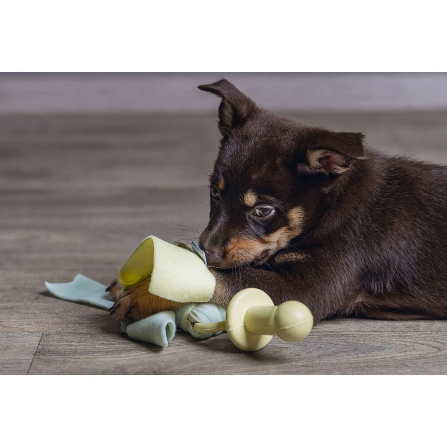 Natuurlijk zal een puppy de fopspeen niet gebruiken zoals een baby dat doet, desalniettemin is de fopspeen een superschattig speeltje voor jouw puppy. Door de combinatie van rubber en zacht fleece heeft je puppy een fijn speeltje om op te kauwen en om mee te spelen. De fopspeen is ook erg leuk om als kraamcadeau te geven voor nieuwe puppy-ouders.