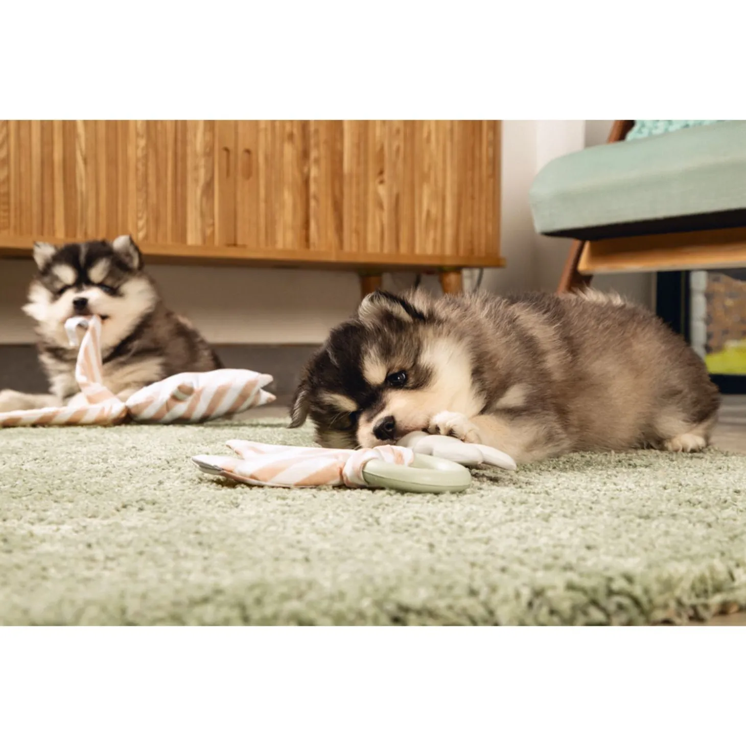 Dit leuke speelgoed in de vorm van een ring masseert het tandvlees van je puppy en het kauwen op de ring verzacht de pijn van doorkomende tanden. Om het bot nog aantrekkelijker te maken, zit er een vrolijke kunststof strik aan bevestigd waardoor het net een konijntje lijkt! Natuurlijk kan je de ring ook gewoon gebruiken om mee te spelen.