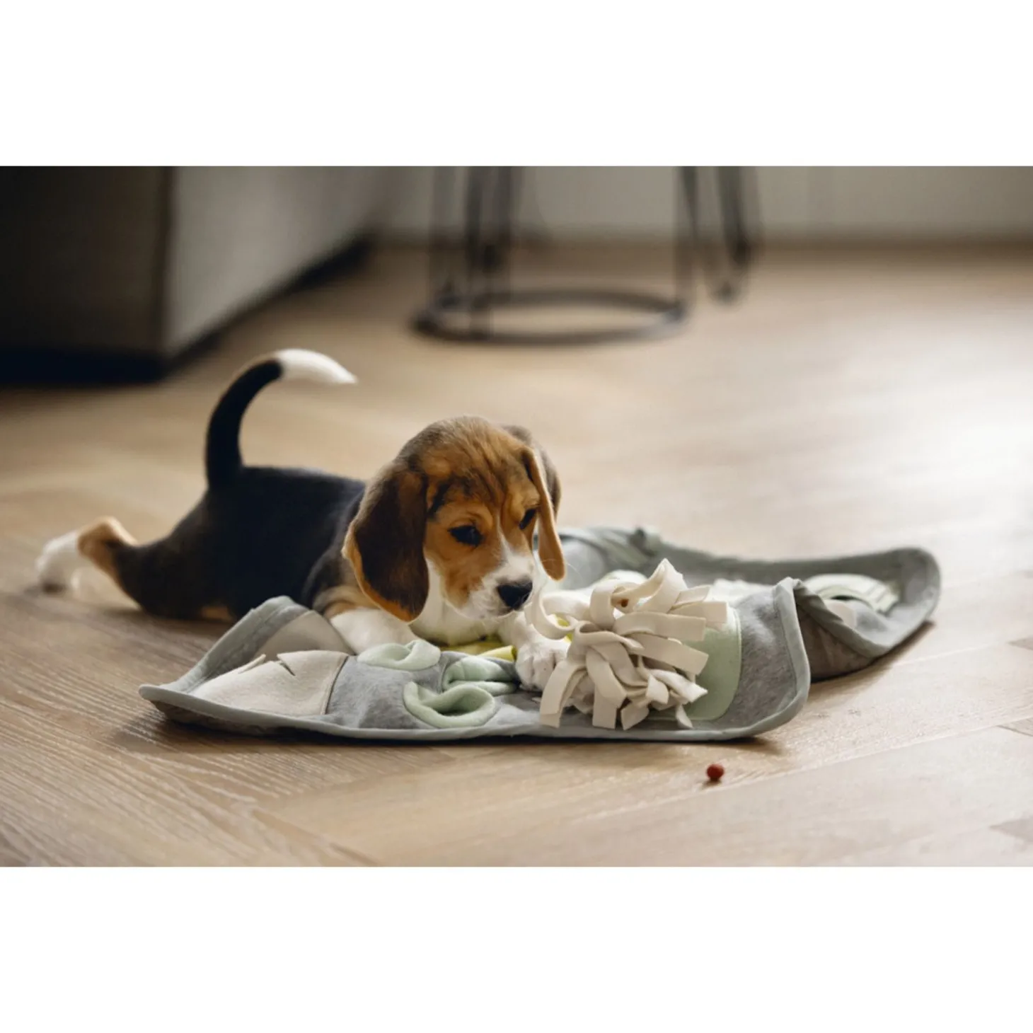 Voer voor je pup kan je natuurlijk aanbieden in een voerbakje, maar je kan ze ook aan het werk zetten met de Puppy Snuffelmat Doeka van Beeztees. Met deze unieke snuffelmat met verschillende plekken om het voer te verstoppen, wordt je jonge hond gestimuleerd om actief op zoek te gaan naar zijn voedsel.