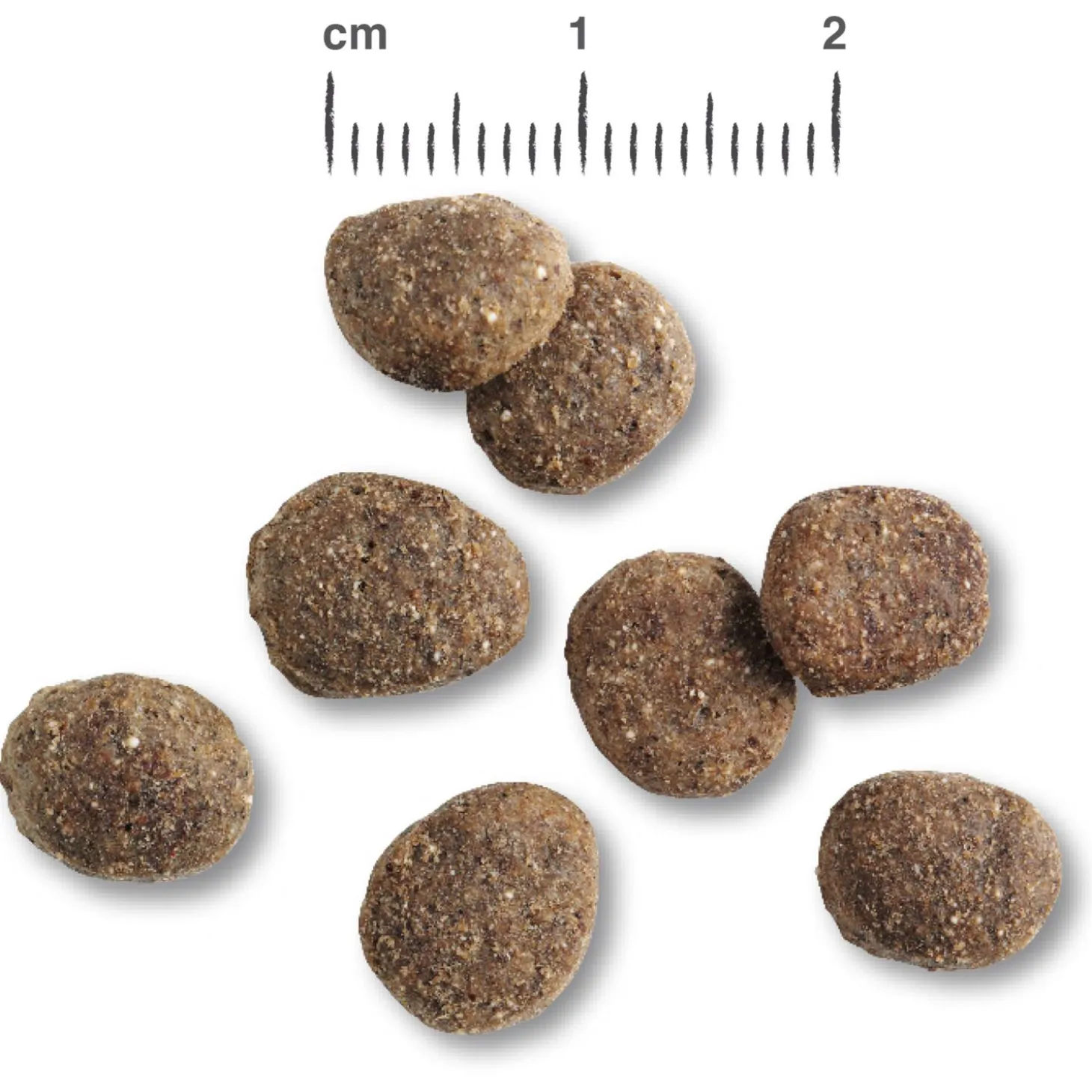 | Samenstelling | Vers pluimveevlees (30 %); rijst (17 %); voerhavermeel; gevogelte eiwit, asarm*¹ (12 %); eendeneiwit*¹ (10 %); vismeel van zeevis (5 %); pluimveelever*² (5 %); pluimveevet; plantaardige olie (palm, kokos); druivenpitexpeller (2,5 %); brouwgist, geïnactiveerd*¹ (2,5 %); gedroogde bietenpulp*³; gebroken johannesbrood*¹; ei*¹; chiazaad; dicalciumfosfaat; natriumchloride; kaliumchloride; kruiden*¹ (brandnetelblad, gentiaanwortel, duizendguldenkruid, maretak, duizendblad, braambladeren) (0,2 %); yucca schidigera *¹gedroogd *²gehydrolyseerd *³ontsuikerd |
