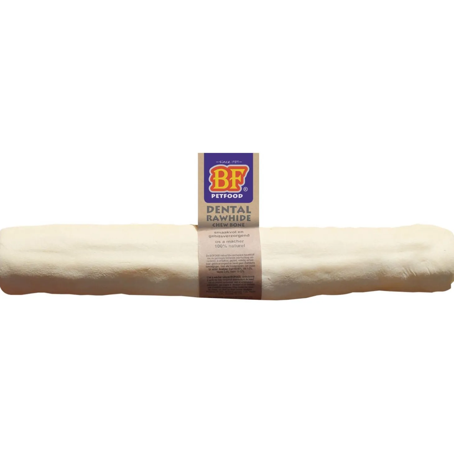 Van nature kauwen wolven en hondachtigen al eeuwenlang graag op bot, huid en pezen van hun prooi. Het kauwen hier op zorgt voor gezond tandvlees en een gezond gebit. Een goed alternatief om dit te blijven nabootsen is het aanbieden van kluifmateriaal op basis van runderhuid. Biofood gebruikt 100% verteerbaar runderhuid uit Zuid-Amerika (A-kwaliteit) en kan dus met een gerust hart aan je trouwe viervoeter gegeven worden.