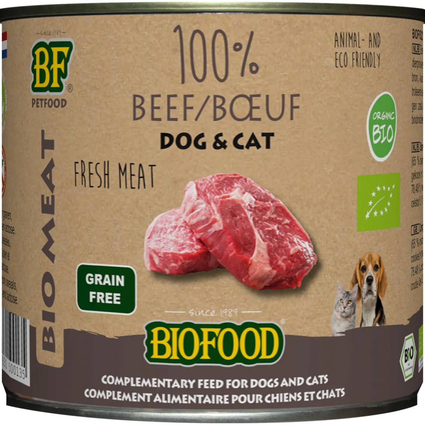 Organic 100% Rund van Biofood is verkrijgbaar in een blik van 200g en 400g