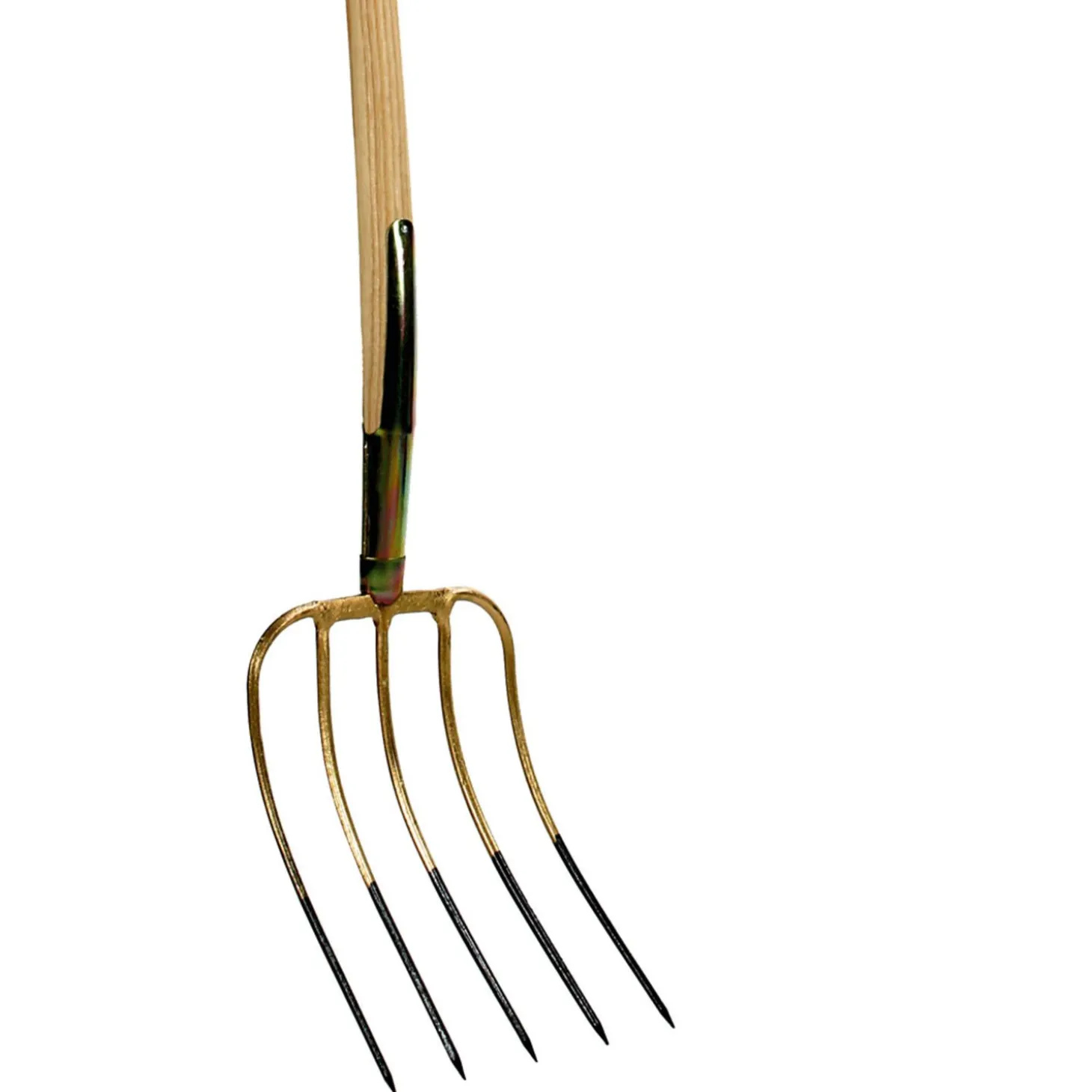 Met de Boerenbond Mestvork verplaats je eenvoudig mest en tuinafval. De vork zit aan de steel vast met een stiftverbinding, daardoor is de vork sterk en toch niet zwaar. De vork is voorzien van een 130 cm lange steel. De vijf dunne, ovalen tanden dringen makkelijk in de vaste mest zonder dat ze breken of buigen.