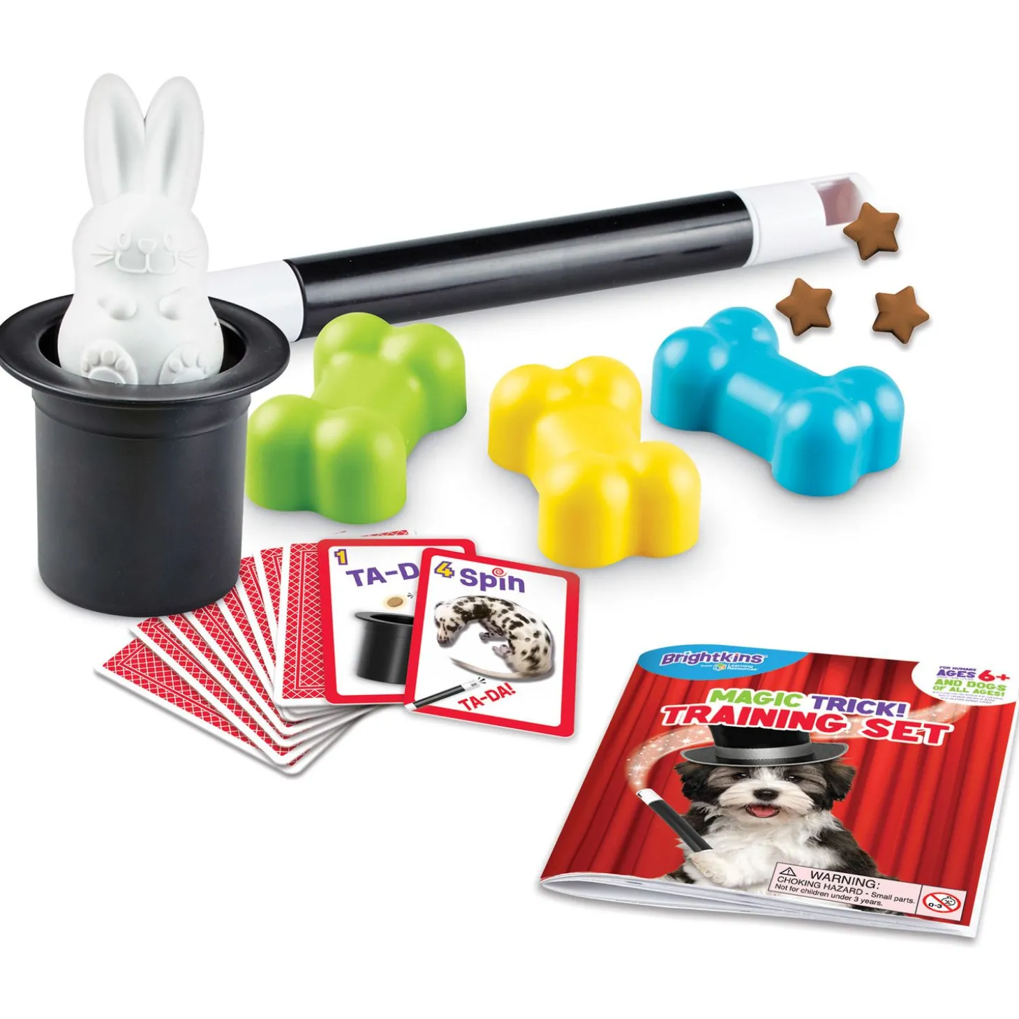 Ben jij klaar om een goochelshow te organiseren voor je hond? Met de 10 trucs in de Brightkins Training Set Magic Trick maak jij het trainen van de hond een gezinsactiviteit. Deze alles-in-één-trainingsset met een deskundige gids van 24 pagina’s en magische accessoires is onmisbaar in een hondenleven.