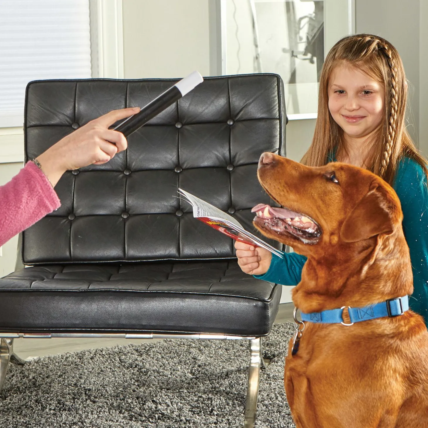 Leer de trucs aan door middel van de bijgeleverde gids. Deze gids is geschreven door een gecertificeerde professionele hondentrainer (CPDT-KA). De set bevat 10 geweldige trucs, waaronder hoe je in een cirkel kunt draaien, “zweven”, verdwijnen en meer! Je kunt uiteindelijk ook de 10 trainingskaarten van de set gebruiken om je hond te testen op de nieuw aangeleerde trucs!