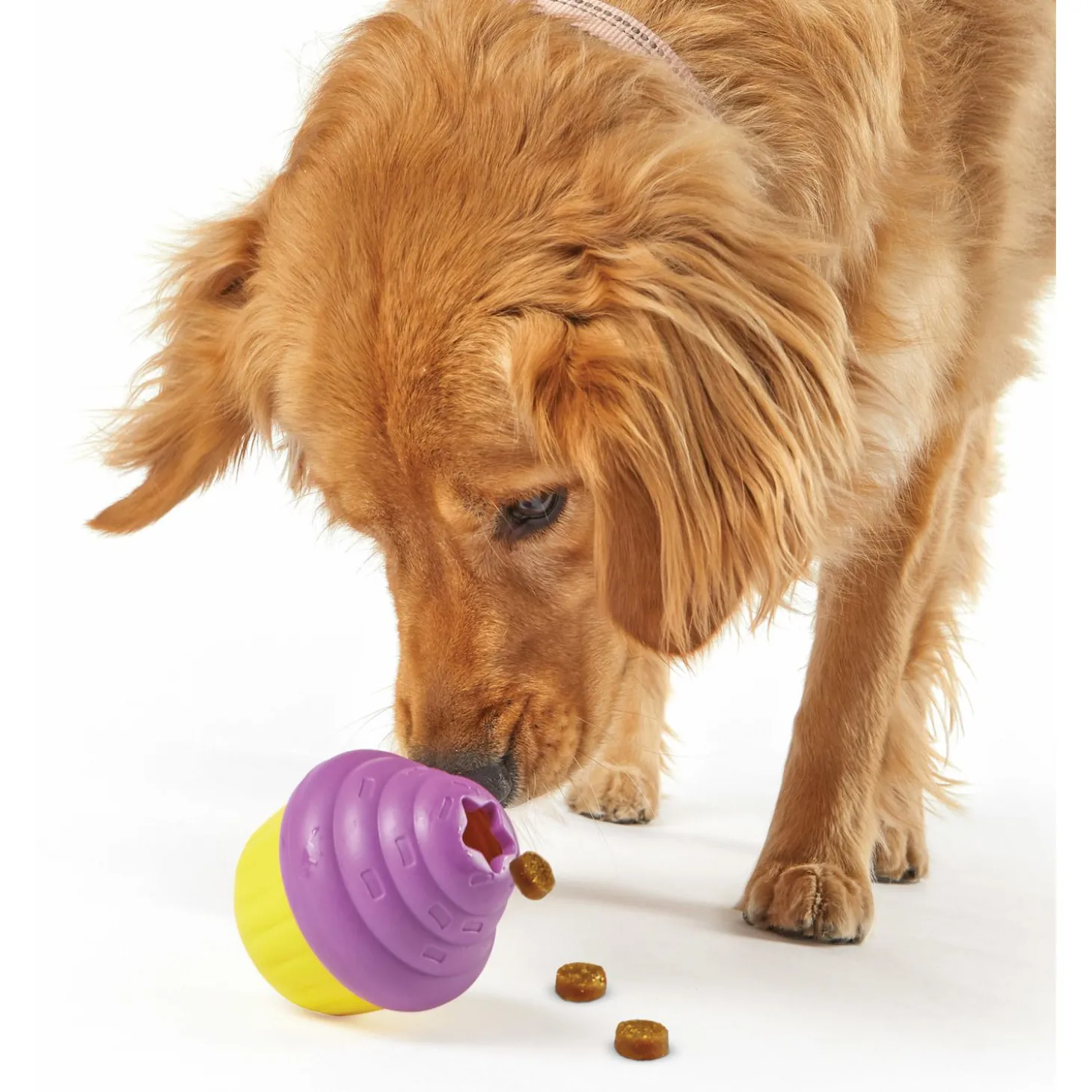 In de natuur zijn dieren bijna de gehele dag aan het zoeken naar voedsel. Bij ons krijgen dieren vaak hun eten voorgeschoteld in een bakje. Dieren kunnen wel wat mentale stimulatie gebruiken om verveling tegen te gaan! Het Voerspeeltje Cupcake Paars Large is een speeltje waar je brokjes of snacks in kan verstoppen. De hond moet dan met zijn neus of poten en hersenen het lekkers eruit zien te krijgen!