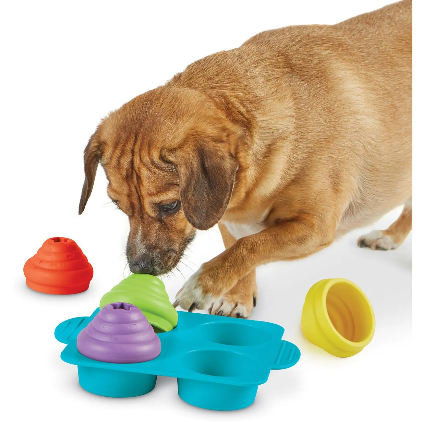 In de natuur zijn dieren bijna de gehele dag aan het zoeken naar voedsel. Bij ons krijgen dieren vaak hun eten voorgeschoteld in een bakje. Dieren kunnen wel wat mentale stimulatie gebruiken om verveling tegen te gaan! Het Voerspeeltje Cupcake Party is een speeltje waar je brokjes of snacks in kan verstoppen. De hond moet dan met zijn neus of poten en hersenen het lekkers eruit zien te krijgen!