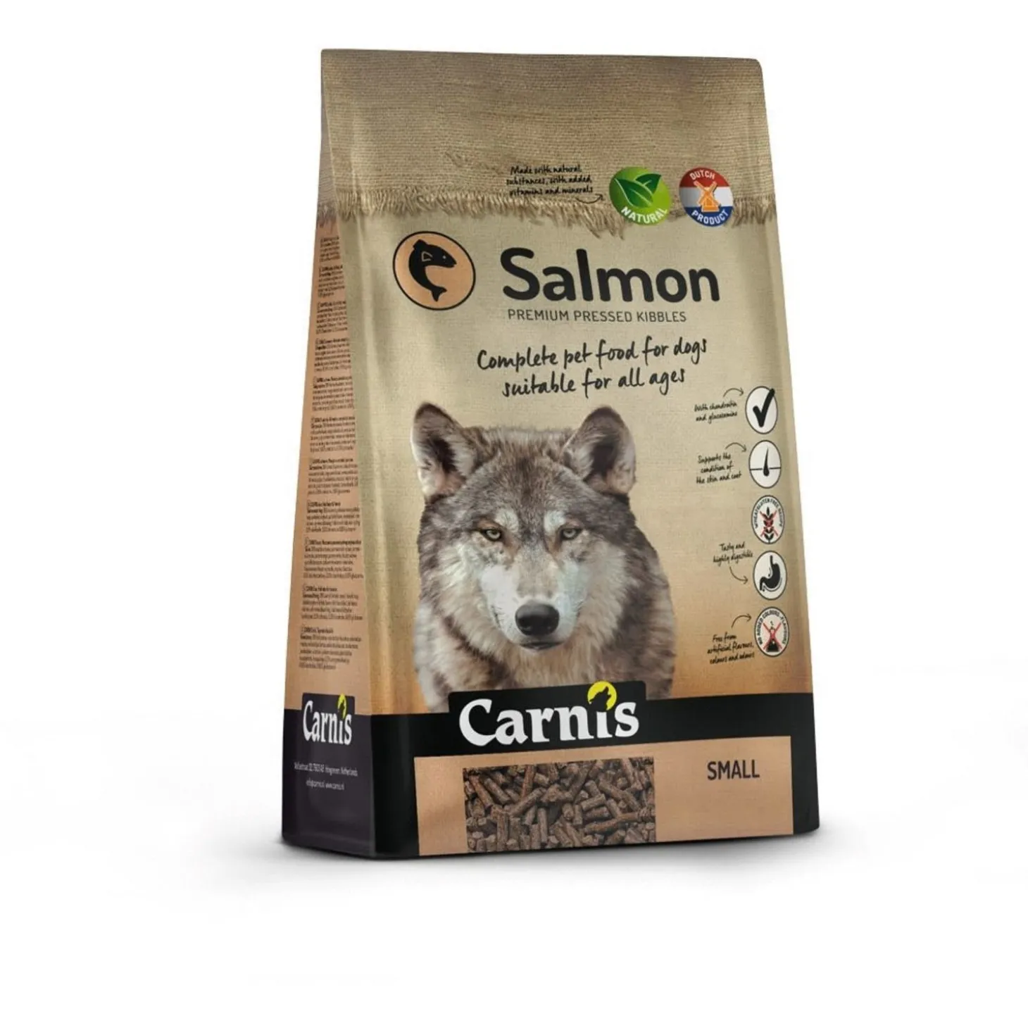 Carnis Droogvoeding Geperst Salmon is hoogwaardige, geperste hondenvoeding op basis van zalm en bevat maar liefst 26% zalm. Dit hoge percentage maakt de voeding extra smakelijk en aantrekkelijk voor jouw hond en is daarmee bij uitstek geschikt voor de gevoelige huid en vacht. De van nature aanwezige omega 3 en 6 dragen daarnaast bij aan een optimale vertering en hebben een gunstige invloed op hart en bloedvaten.