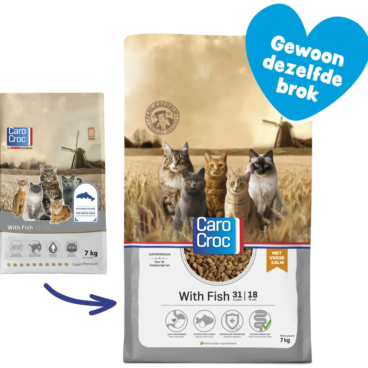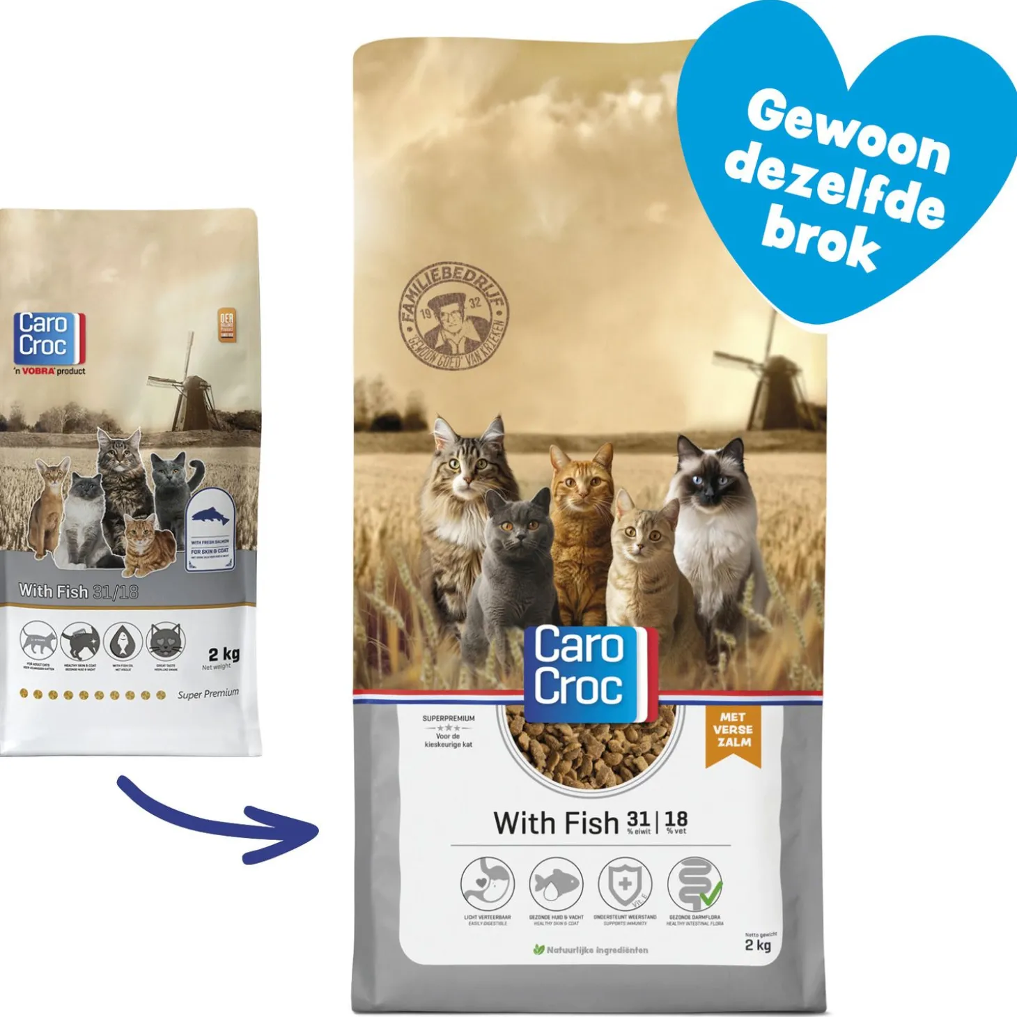 CaroCroc kent als familiebedrijf een lange geschiedenis. Het is een oer-Hollands bedrijf, gelegen in het plaatsje Veghel, en maakt uitsluitend gebruik van hoogwaardige ingrediënten. De brokken zijn gemaakt zonder toevoegingen van kunstmatige geur-, kleur- en smaakstoffen en zijn daarmee 100% natuurlijk. CaroCroc werkt met de zogenaamde CaroCroc-filosofie; iedere voeding bevat een uniek eiwit- en vetgehalte welke is afgestemd op de energiebehoefte van je trouwe viervoeter. Kies je voor CaroCroc? Dan kies je voor ‘Gewoon goed’; een goede kwaliteit en een eerlijke prijs!