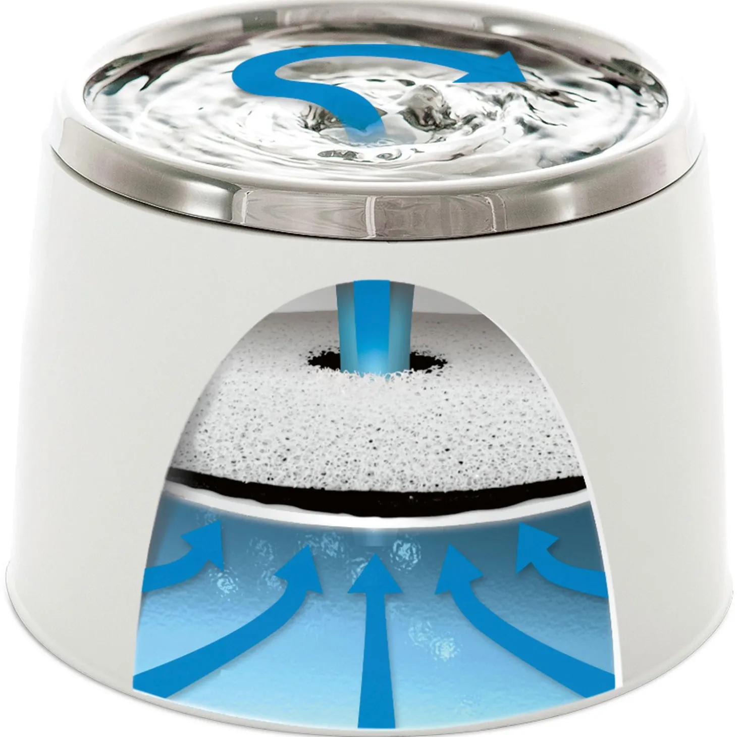 Katten hebben nou eenmaal de voorkeur voor zuurstofrijk water. Deze Drinkfontein met RVS zorgt door middel van een pompje dat je kat de hele dag door toegang heeft tot vers, stromend water. Dankzij het RVS is de fontein extra duurzaam en gaat deze lang mee. Door de vervangbare filters blijft het water schoon (vervang het filter om de drie weken).