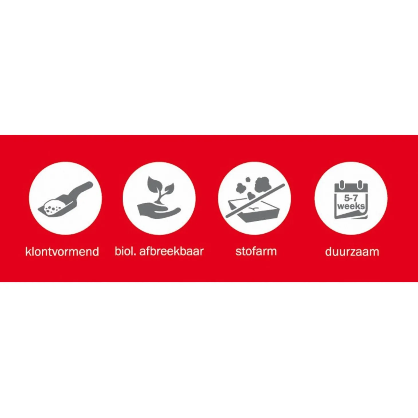 - Klontvormend: de vulling klontert om de urine en ontlasting op te vangen, waardoor het schoonmaken van de kattenbak eenvoudig is.