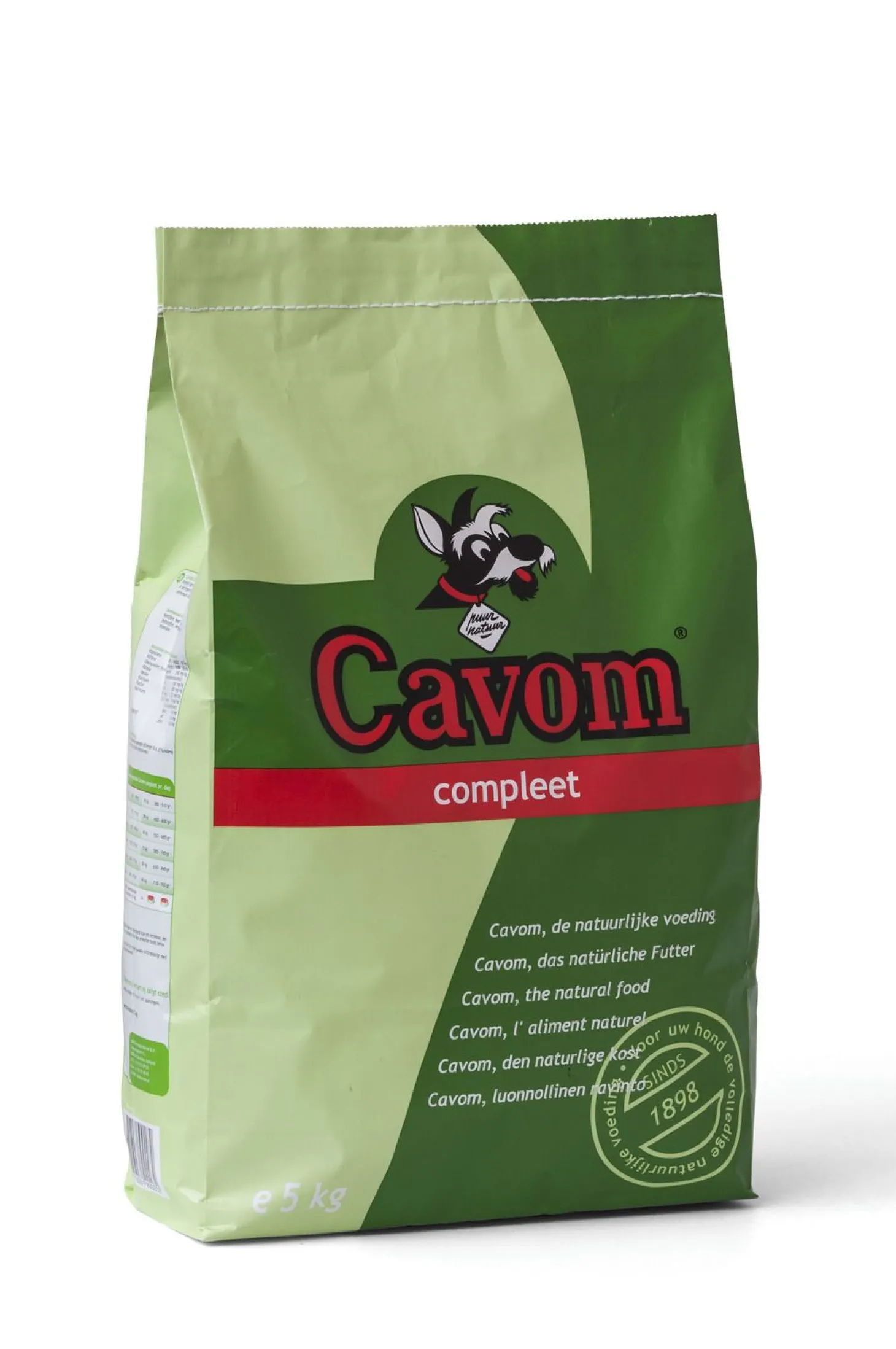 Cavom Compleet is hét boegbeeld van Cavom. De granen met onder andere maïs, rijst en tarwe zijn grotendeels ontsloten. Verder bevat de voeding dierlijke eiwitten met rund en schapenvlees maar ook plantaardige eiwitten, zodat de aminozuren in het lichaam goed in balans zijn.