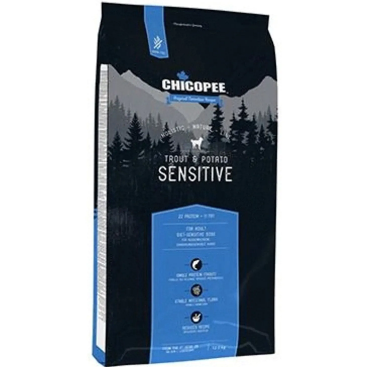 Chicopee Holistic Nature Sensitive Trout & Potato: Hypoallergeenvoer voor honden met een gevoelige spijsverteringHeeft uw hond last van een gevoelige spijsvertering? Dan is Chicopee Holistic Nature Sensitive Trout & Potato wellicht de perfecte voeding voor uw trouwe viervoeter. Deze hypoallergene brok is speciaal ontwikkeld voor honden met voedselallergieën of -intoleranties.