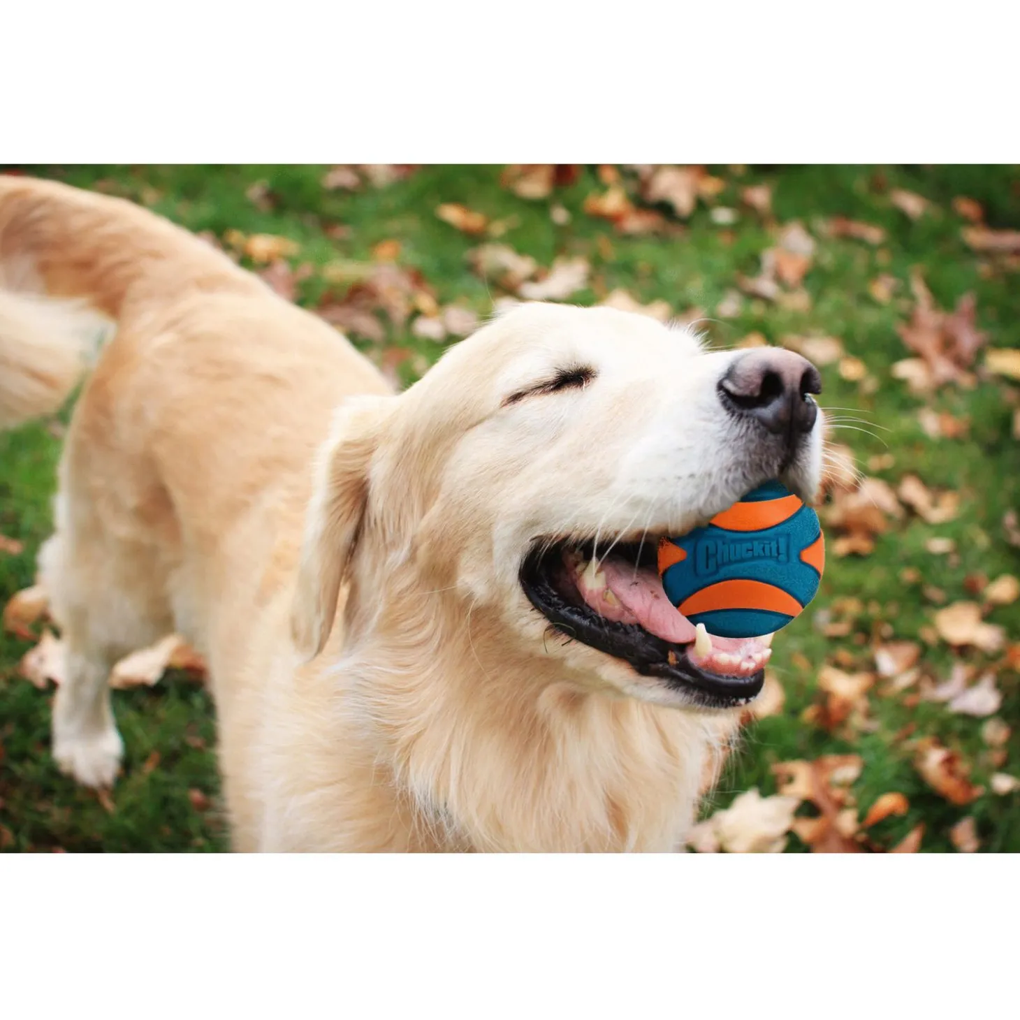 Deze Chuckit Ultra Squeaker Ball maakt het spelen voor jou en je huisdier extra leuk doordat er een piepend geluid in de bal zit en de bal een stuiterend effect heeft. De bal is ideaal voor honden die graag langs de waterkant of in het water spelen, door het drijvende ontwerp en zijn felle kleuren is de bal gemakkelijk terug te vinden op het water. Het gestructureerde oppervlak helpt je hond een goede grip op de bal te krijgen.
