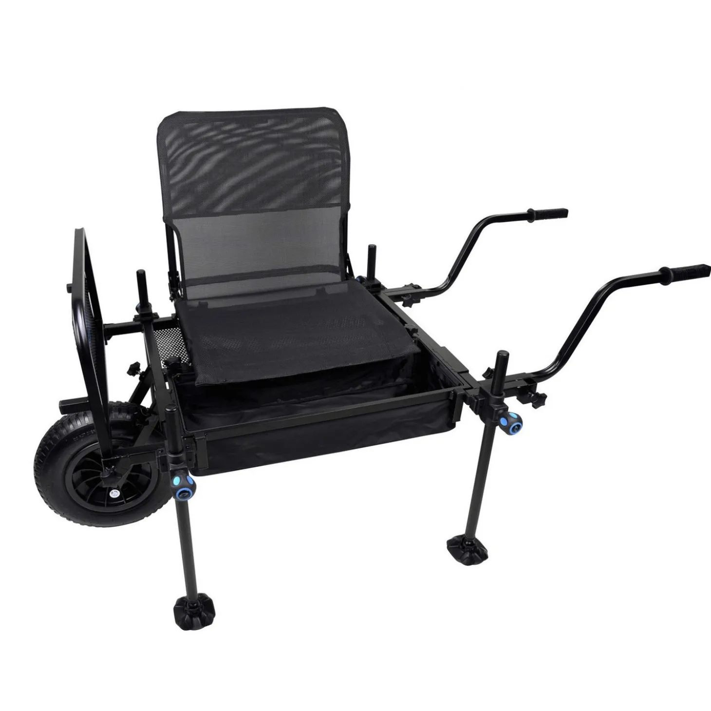 De Cresta Blackthorne Barrowseat combineert het zitcomfort van een stoel met de stabiliteit van een zitkoffer of plateau en bezit bovendien een barrowsystem met geïntegreerde zijplateaus. Het inklapbare zitvlak is gemaakt van kunststof, waardoor het geen water opneemt. Om het oppervlak van de Barrow zo optimaal mogelijk te kunnen gebruiken tijdens transport is het zitvlak op een afneembaar frame geplaatst. het geheel is aan de waterkant stabiel en recht te plaatsen, dankzij de 4 individueel verstelbare 25mm poten, welke zijn voorzien van brede en kantelbare moddervoeten. het robuuste non-mark klemsysteem is voorzien van antislip draaiknoppen voor optimale fixatie. Dit maakt de Barrowseat ideaal voor de hengelaar die zijn uitrusting compact en mobiel wil samenstellen om zonder concessies verre stekken comfortabel bereikbaar te maken.