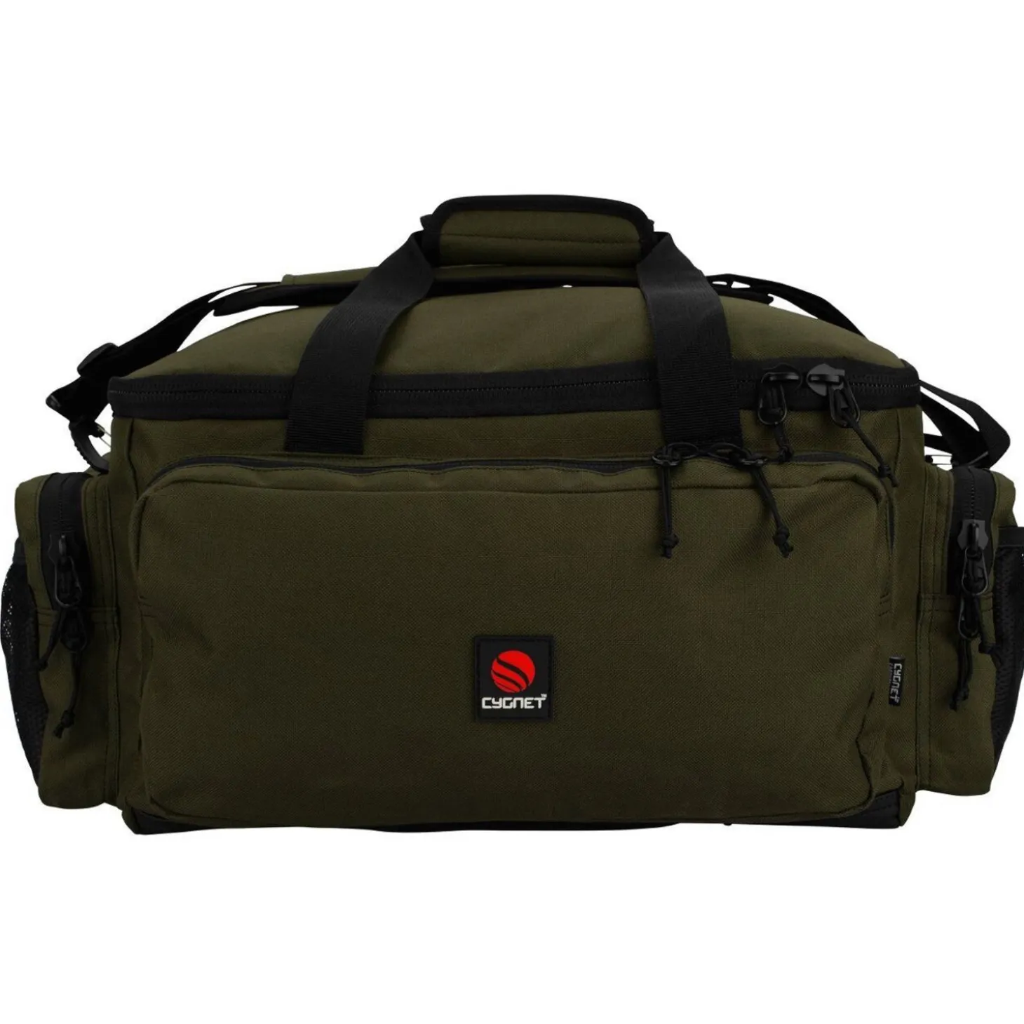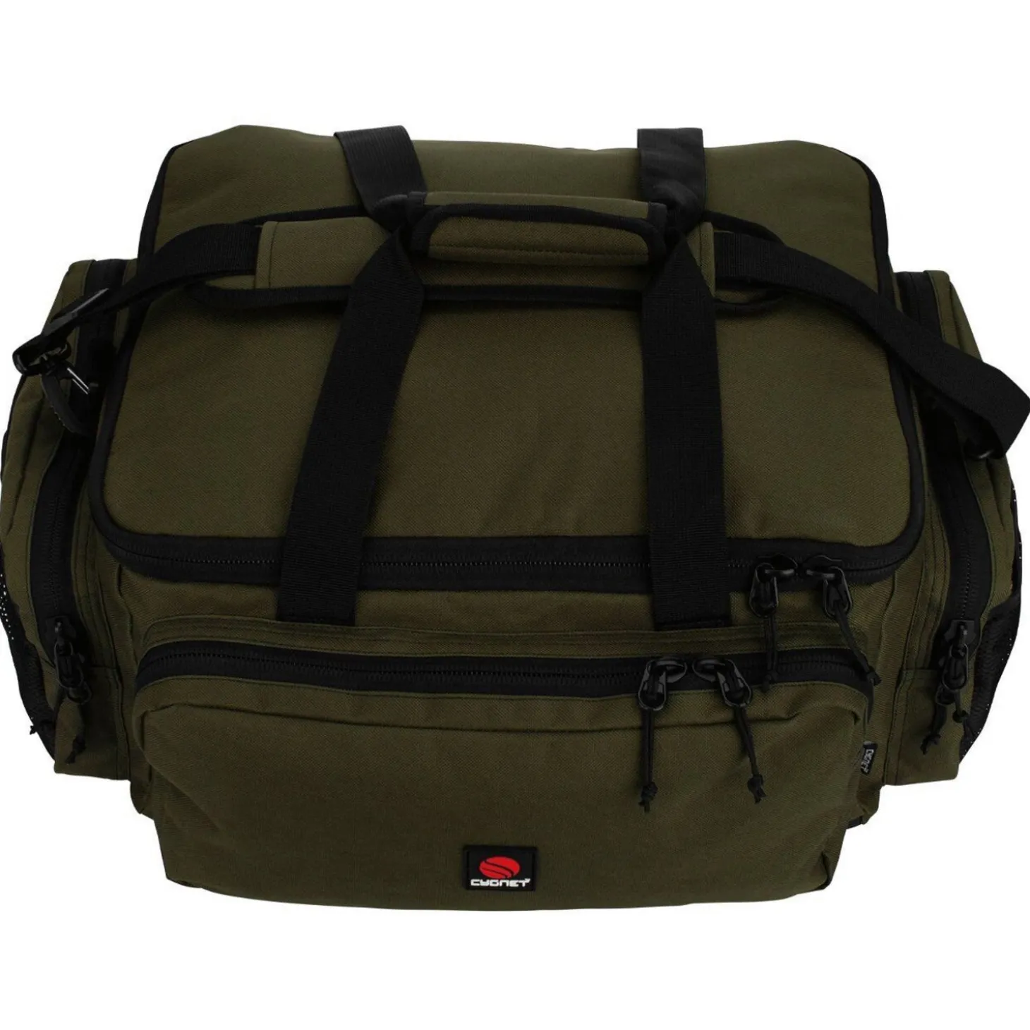 De Cygnet Carryall is ideaal voor de opslag van allerlei vismateriaal en accessoires, Hiernaast heeft het ook een ruim hoofdcompartiment met gaasvak met rits in de klep en twee grote ritsvakken aan beide zijkanten met extra gaasvakken aan de buitenkant en een ritsvak aan de voorkant. De Basis van de tas is verstrekt met nyplex dit voorkomt slijtage en het binnendringen van water.