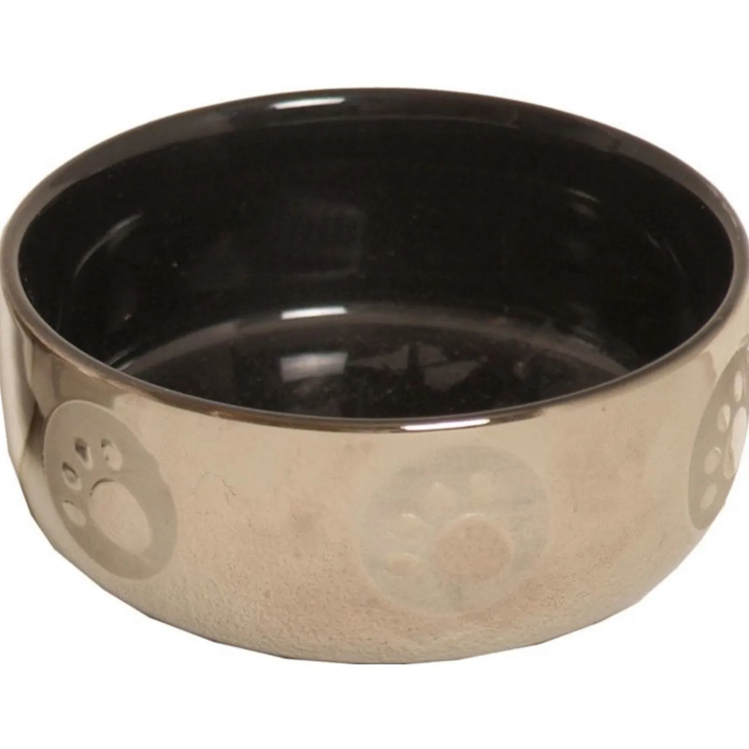 De Katteneetbak Royal Zilver/Zwart van Homestyle is een chique en mooie voer-of waterbak voor je huisdier. Dit bakje is gemaakt van keramiek met een glanzende zilveren buitenkant, bedrukt met pootjes. Vanbinnen is de voerbak zwart van kleur. Doordat het bakje gemaakt is van keramiek, is deze zwaarder dan normale plastic bakjes. Zo blijft het bakje goed op de grond staan wanneer je kat (of hondje) er uit probeert te eten of drinken. De keramieken bak is ook goed schoon te houden.