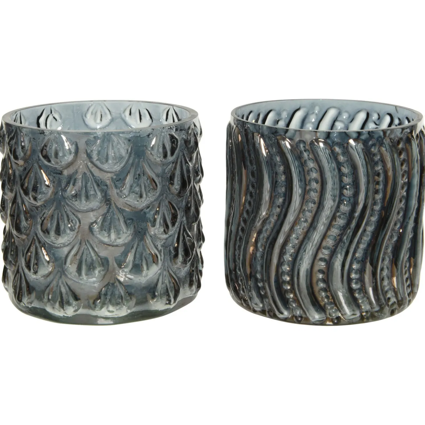 Om een knusse winterse avond te hebben, heb je theelichtjes nodig. Deze Theelichthouder van Decoris is eengrijzewaxinelichtjeshouder, met kronkel strepen of met waaier vormpjes.