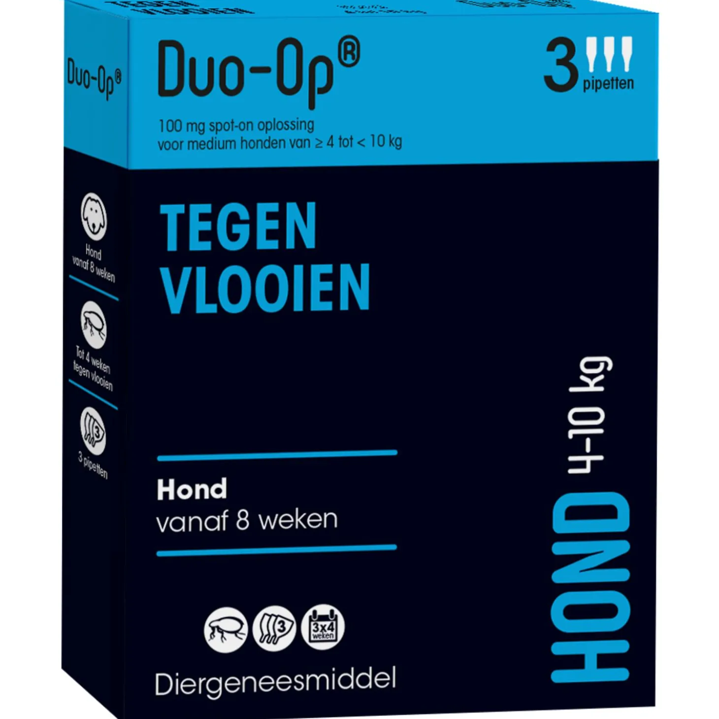 Wanneer er een vlooienplaag optreedt, is het altijd belangrijk dat je alle huisdieren in het huishouden tegelijk behandelt tegen vlooien. Heb jij een hond, kat en een konijn? Dan is Duo-Op een ideaal product waarmee je alle huisdieren in 1 keer kunt behandelen. Let uiteraard wel op dat je het juiste product voor elk huisdier koopt. Er zijn verschillende varianten voor hond, kat en konijn, verdeeld in gewichtsklassen.