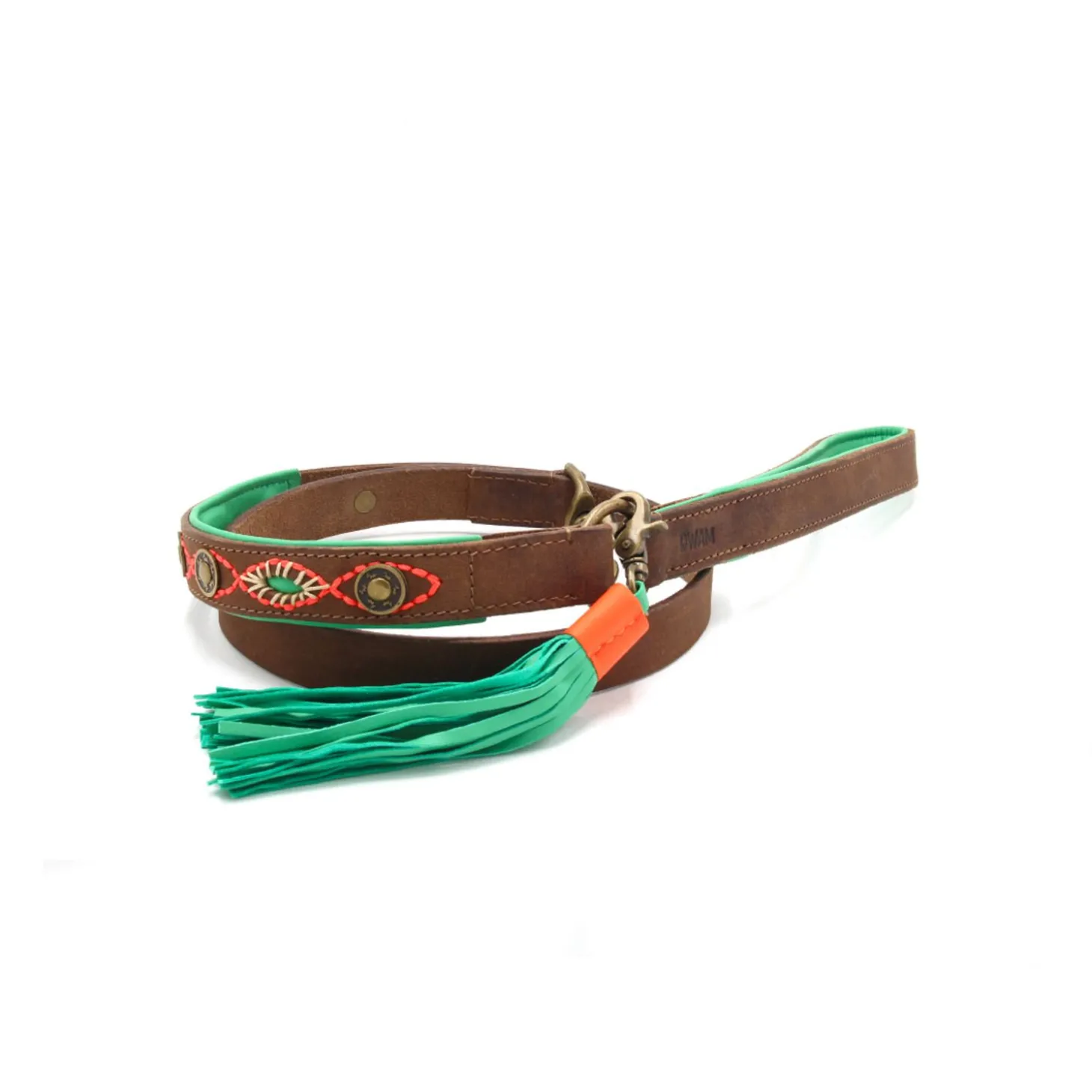 Wanneer je op pad gaat met je hond, wil je er natuurlijk wel flitsend uitzien. DWAM heeft een assortiment met prachtige riemen en halsbanden waarmee je hond er altijd stijlvol bij loopt. De Joplin van Dog With A Mission is een handgemaakte, oersterke looplijn voor je viervoeter. De Joplin is gemaakt van leer waardoor deze wel tegen een stootje kan. De riem is verder afgewerkt met stoffen details voor een chique uiterlijk.