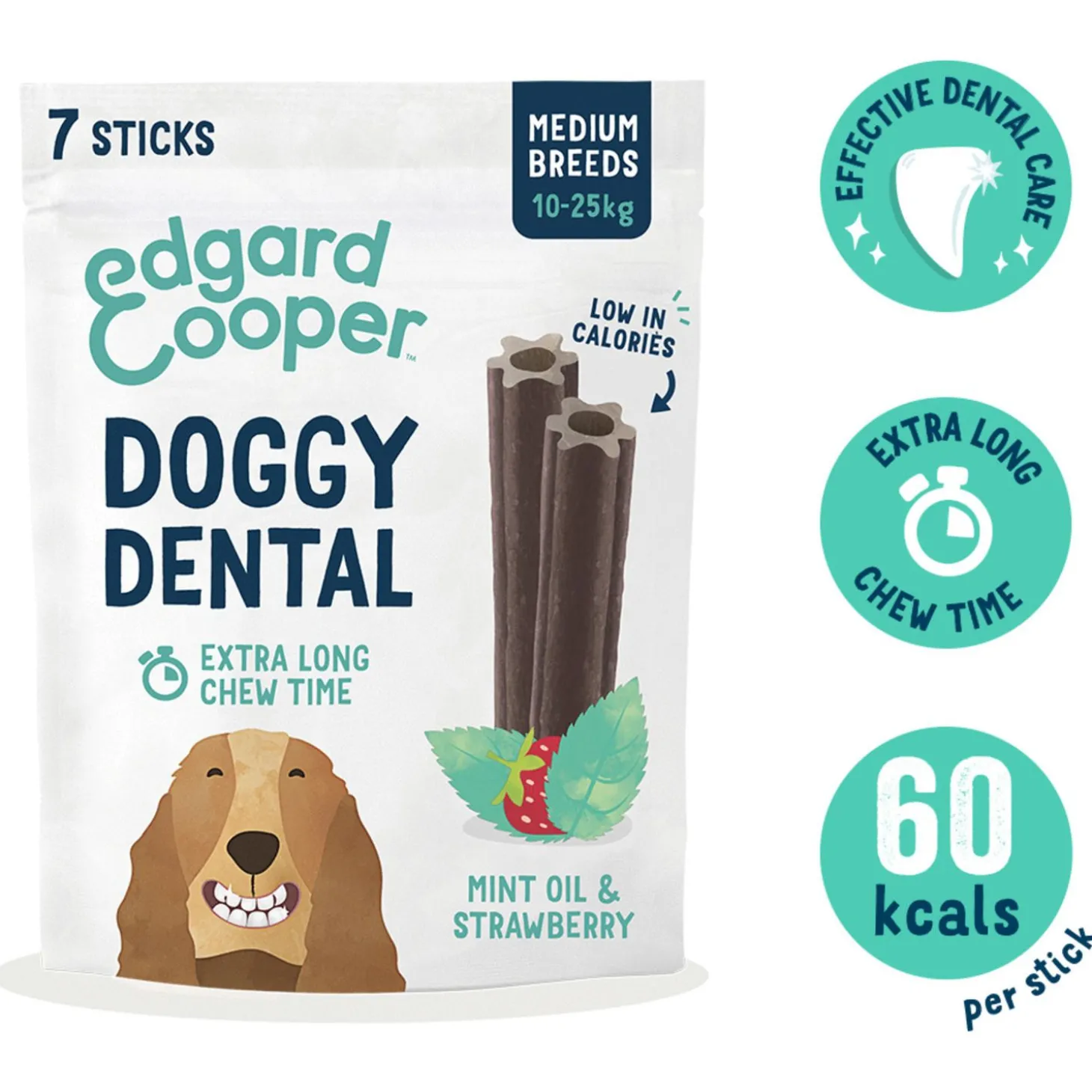 De Dental Sticks van Edgard & Cooper voor honden met de smaak aardbei en munt helpen jouw hond aan een schoon gebit, frisse adem én sterke tanden!