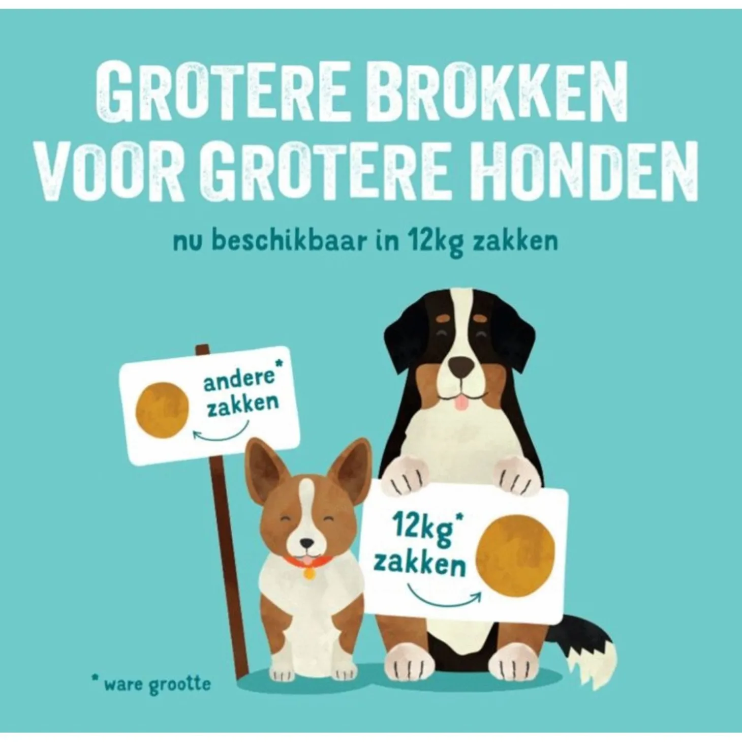 Let op: de 12 kg zak bevat extra grote brokken voor grote honden! Koop deze dus NIET als je een kleine of middelgrote hond hebt.
