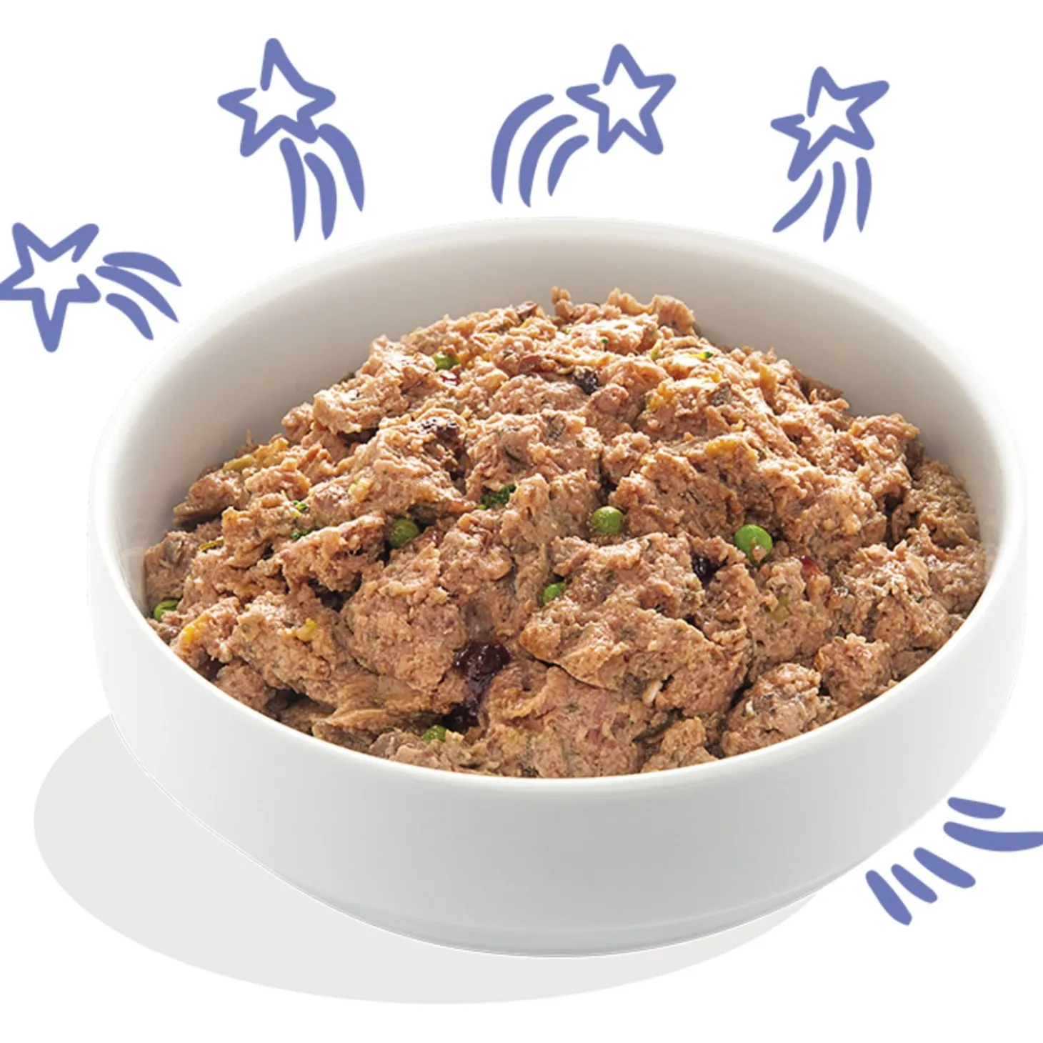 Dit vleeskuipje zit boordevol heerlijk rundvlees en eend, fantastische bronnen van hoogwaardige eiwitten en aminozuren, en is op een lage temperatuur gegaard. De toegevoegde zoete aardappel is een fantastische (trage) energieleverancier en de voedingswaarde wordt verder opgekrikt met extra voedzame vleesoverschotten, zoals hart en lever. Verder is het kuipje aangevuld met zoete aardappel en broccoli en zorgen lekkere kruiden en botanicals voor een extra boost.