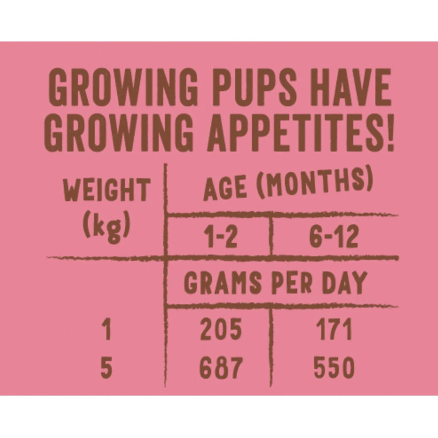 Dit vleeskuipje zit boordevol verse eend en kip, fantastische bronnen van hoogwaardige eiwitten, en is op een lage temperatuur gegaard. De natvoeding is speciaal ontwikkeld voor opgroeiende puppy’s, zo zorgen de eiwitten voor sterke spieren en een gezond immuunsysteem. De voedingswaarde wordt verder opgekrikt met extra voedzame vleesoverschotten, zoals hart en lever. Verder is het kuipje aangevuld met broccoli en wortel en zorgen lekkere kruiden en botanicals voor een extra boost.