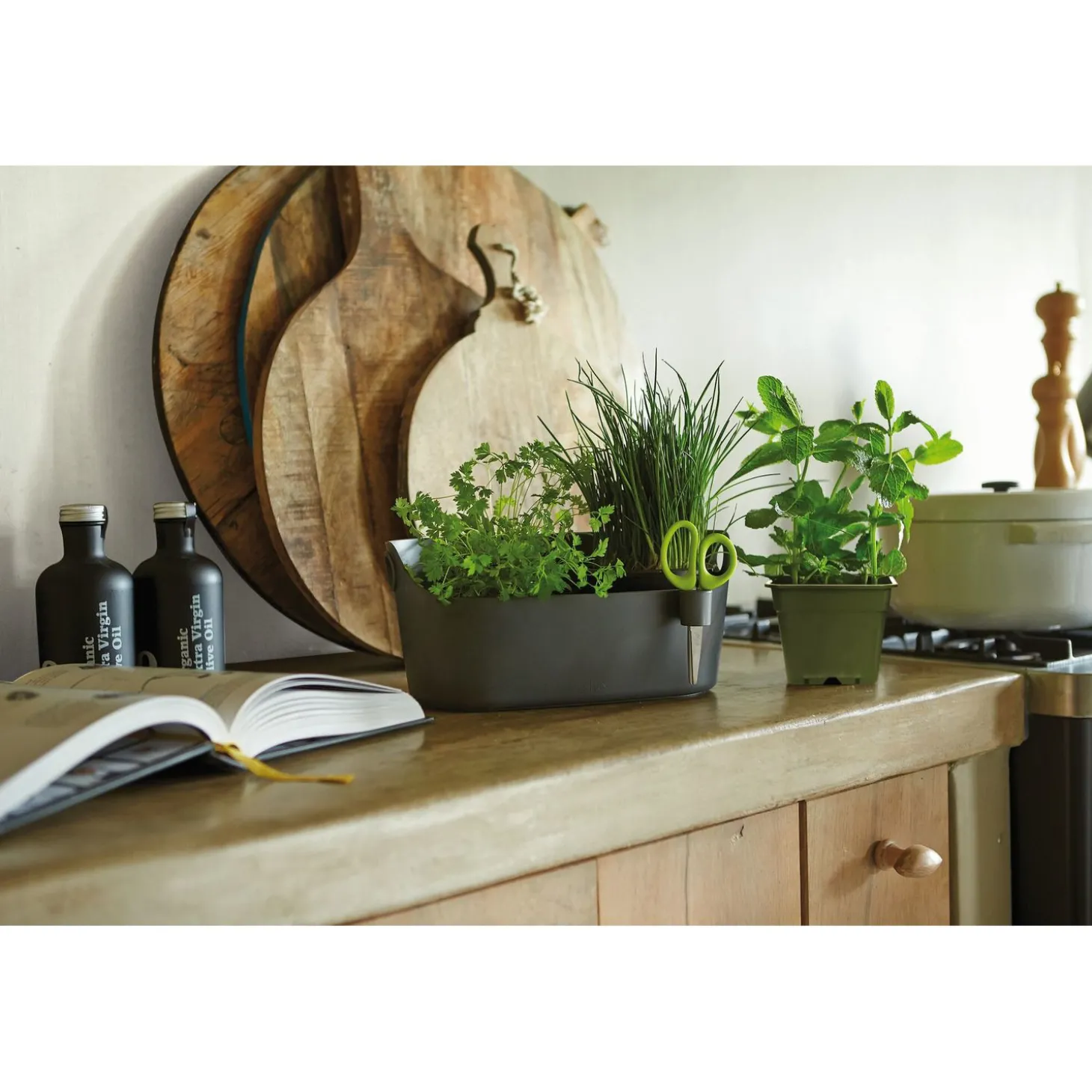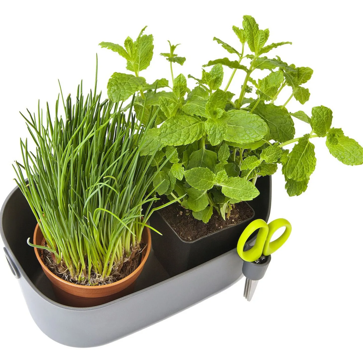 - De bijgeleverde roestvrijstalen kruidenschaar is perfect voor het eenvoudig en snel fijn knippen van je kruiden.