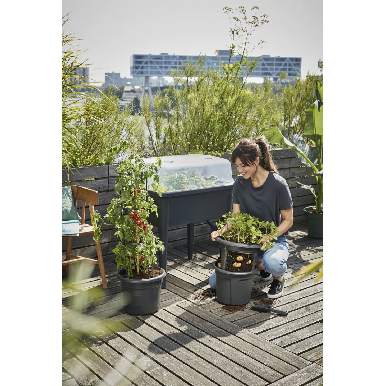 Voor het beste resultaat combineer je het Kweekhuis met de Green Basics Kweektafel van Elho. Deze tafel bevat holle poten voor het afvoeren van water en is licht in gewicht voor makkelijke verplaatsing. De Kweektafel is los verkrijgbaar.