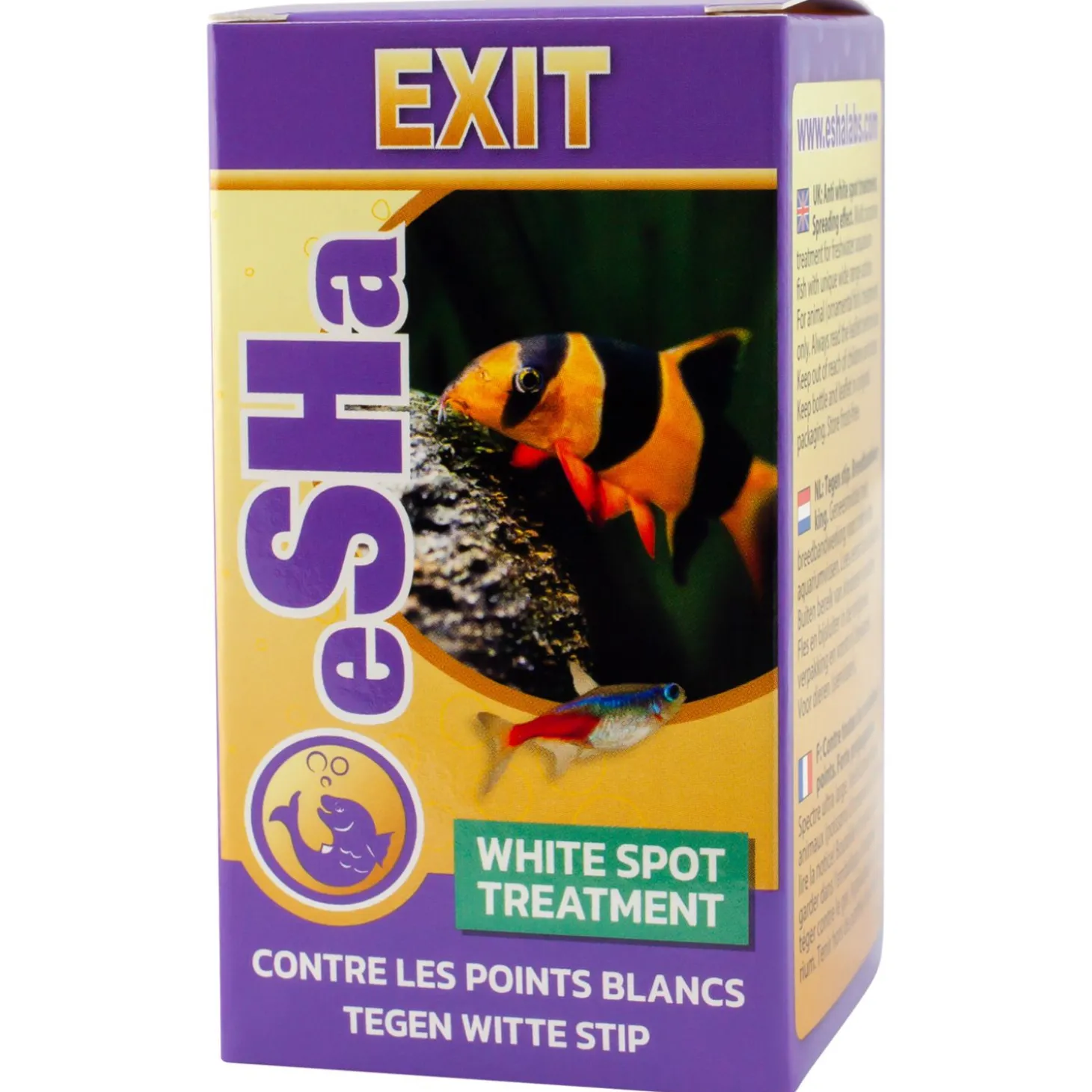 - Esha EXIT behandelt diverse vormen van ‘stip’ (Ichthyo) en onderscheidt zich door ook peperstip (Oodinium) aan te pakken om verwarring te voorkomen.