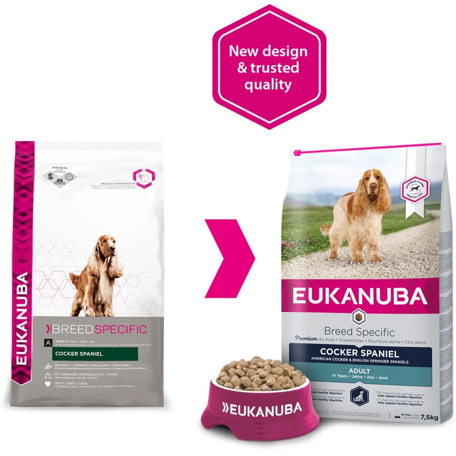Sommige rassen hebben een erg specifieke voedingsbehoefte, daarvoor heeft Eukanuba de Breed Specific-lijn in het leven geroepen. Zoals bijvoorbeeld Eukanuba Breed Specific Cocker Spaniel. Geschikt voor volwassen cockerspaniëls vanaf 1 jaar oud. Het voer is ook geschikt voor de Amerikaanse cockerspaniël en Engelse springerspaniëls.