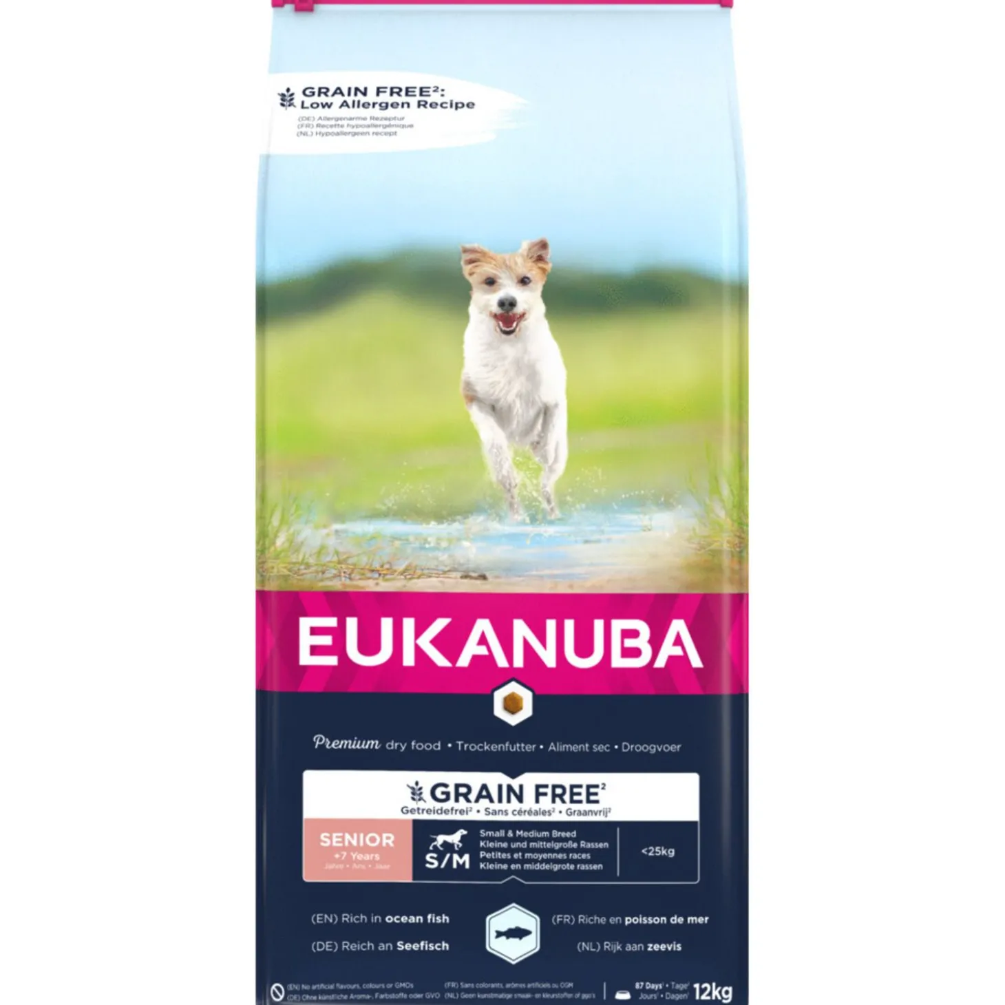 Eukanuba Senior Large Breed Graanvrij Oceaanvis is een speciaal ontwikkeld droogvoer voor oudere honden van grote rassen. Het is rijk aan zeevis en glutenvrije zoete aardappel. Eukanuba Senior Large Breed Graanvrij Oceaanvis bevat glucosamine en chondroïtine om gezonde gewrichten en actieve mobiliteit te ondersteunen. Het speciaal afgestemde vezelmengsel van prebiotica en bietenpulp bevordert een gezonde spijsvertering.