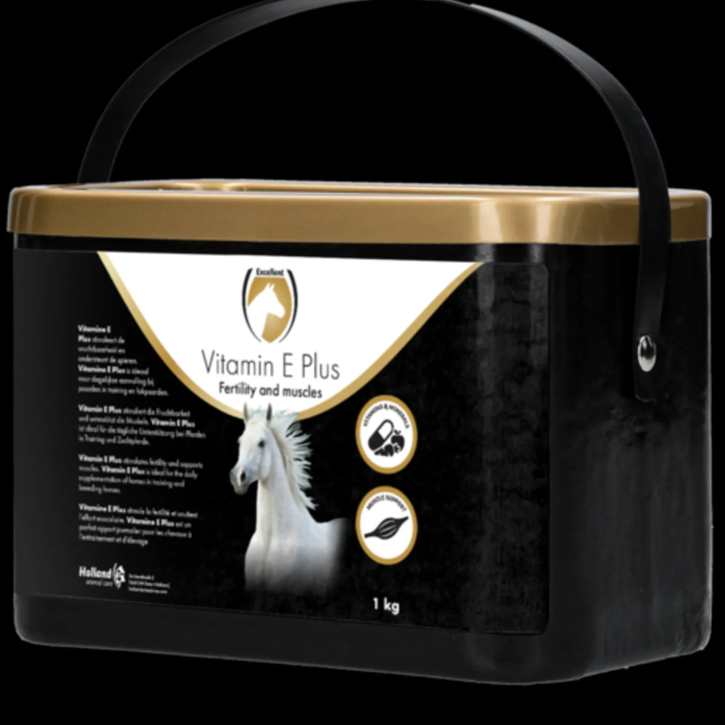 - Vitamine E Plus is een uitgebalanceerde plus voeding met vitamine E, lysine en selenium. Dit zijn belangrijke voedingsstoffen voor de ondersteuning van spieren, weerstand en vruchtbaarheid.