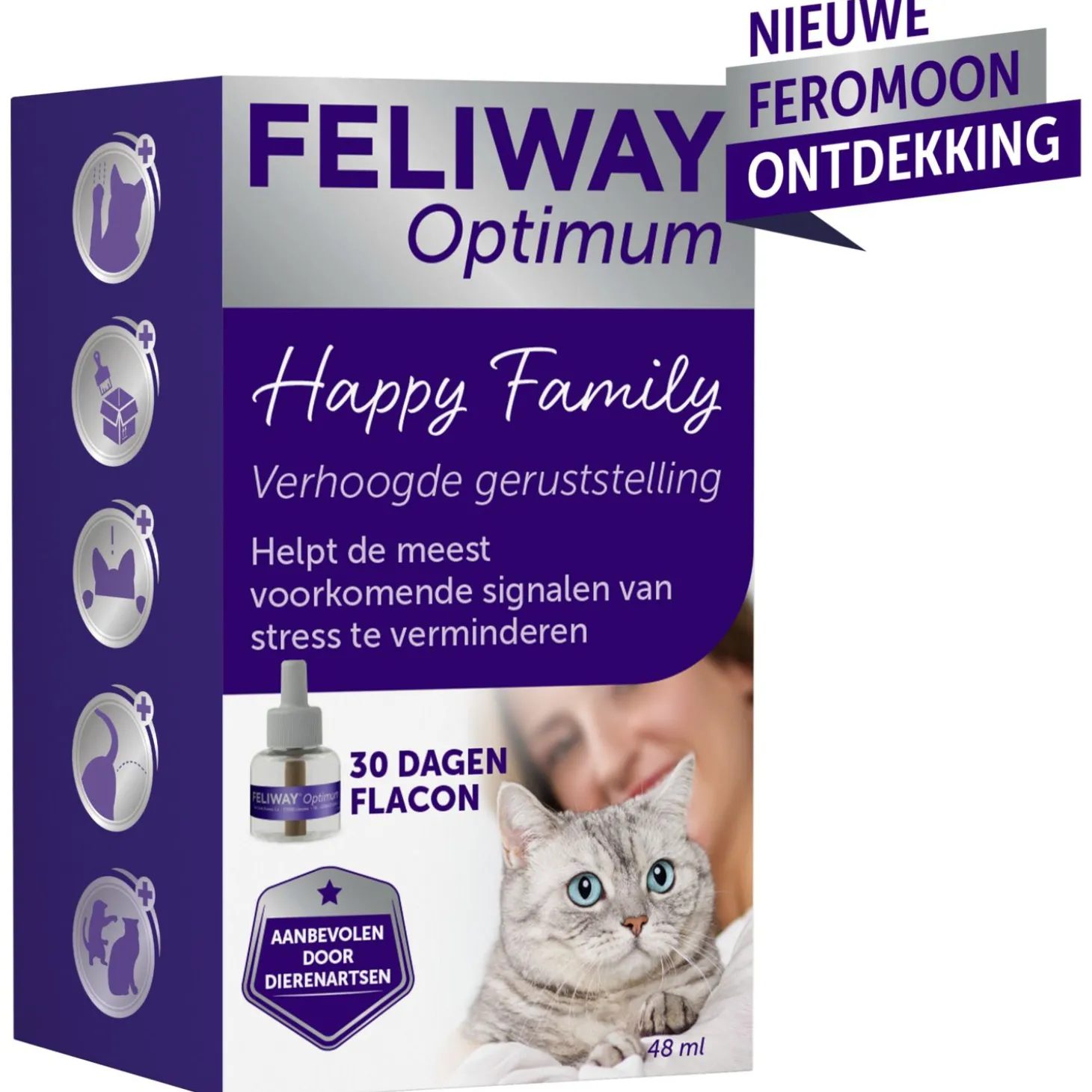 Wanneer jouw Feliway Optimum na 30 dagen zijn werking verliest, kan je het apparaat bijvullen met de Feliway Optimum Navulling. Feliway bevat de béste kattenferomonen om alle tekenen van stress aan te pakken en je kat beter dan ooit te kalmeren. Het zorgt voor een veilig en vertrouwd gevoel, biedt geruststelling en zorgt voor harmonie tussen meerdere katten in huis.