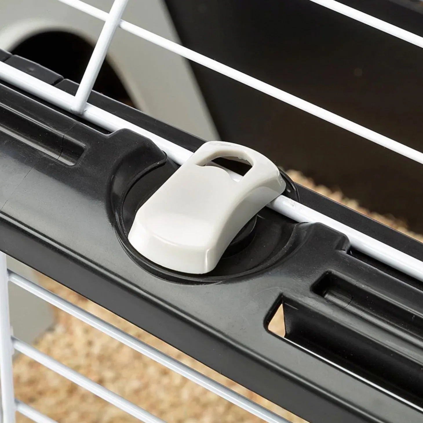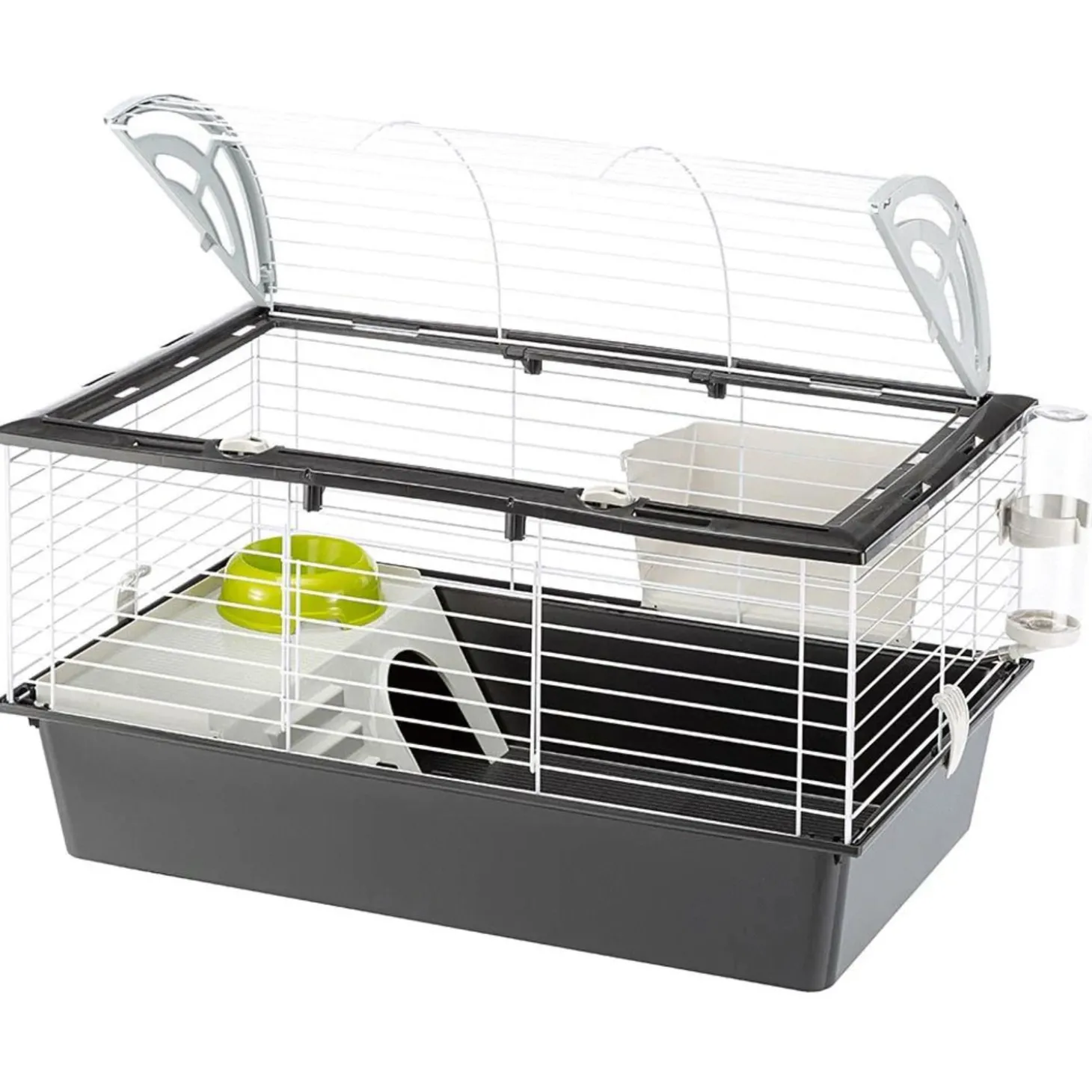 Casita heeft een afgerond dak dat open kan. Het grootste model is om praktische redenen opgedeeld in twee delen. Alle modellen worden geleverd met accessoires, waaronder een voerbak, een drinkfles, een voerbak en een huisje met een getrapte muur zodat je kleine vriend er gemakkelijk op kan klimmen. De schuifdeur kan worden geopend, zodat uw kleine huisdier af en toe uit de kooi kan rondlopen door het huis. Deze kooi is heel gemakkelijk schoon te maken: open gewoon het dak en je kunt bij alle onderdelen die grondiger moeten worden schoongemaakt. Dankzij het Save Space-systeem kan Casita volledig worden gedemonteerd.