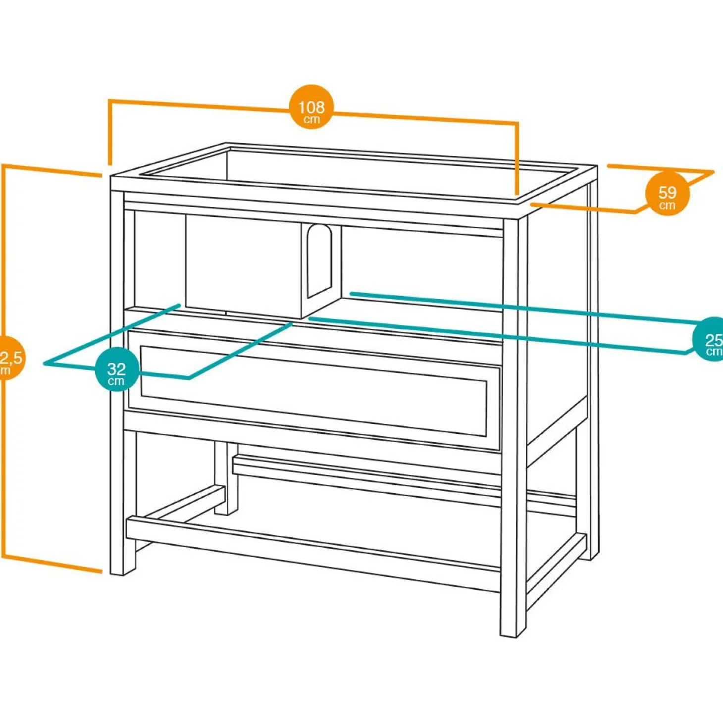 De Cottage heeft een afmeting van 108 x 59 x 102,5 cm.