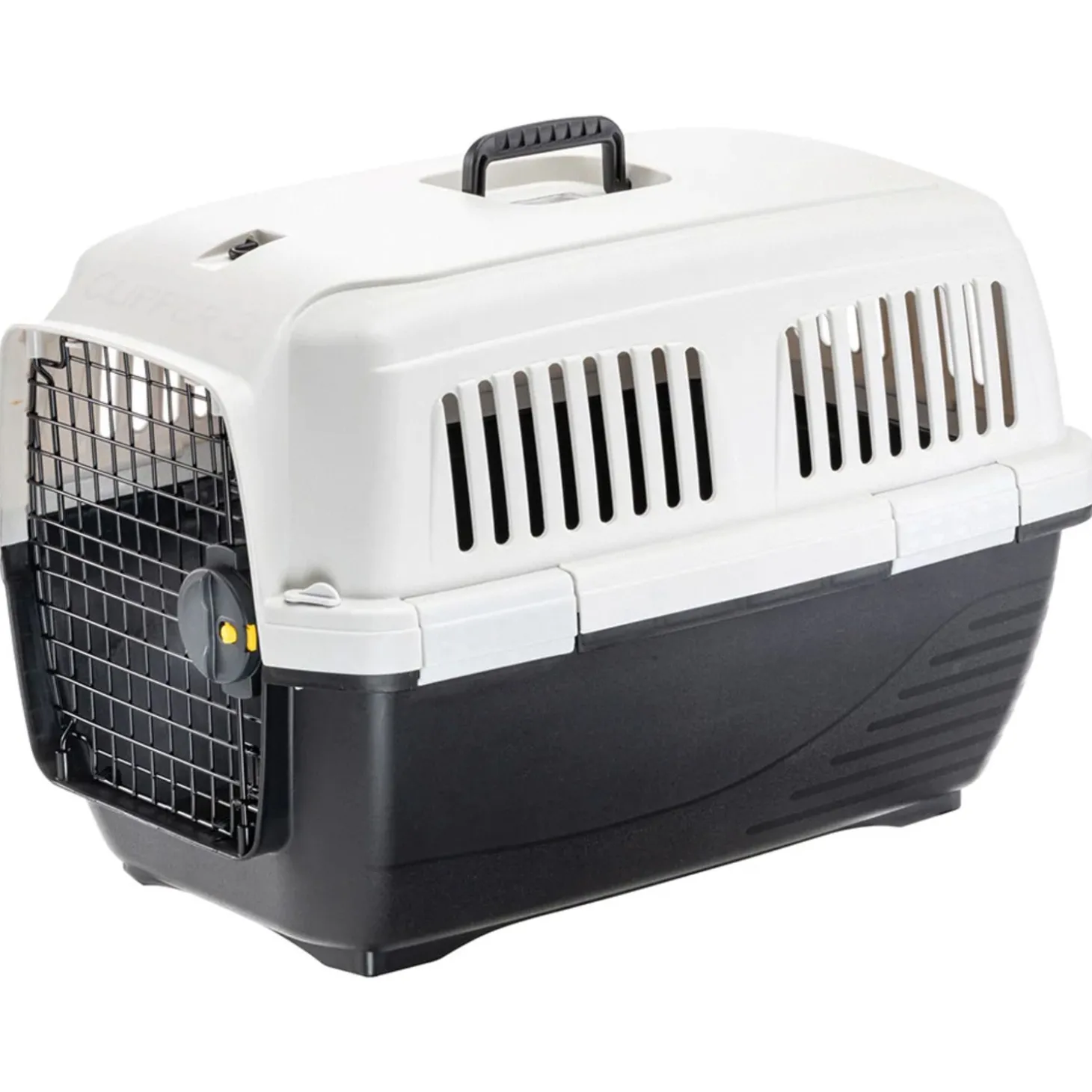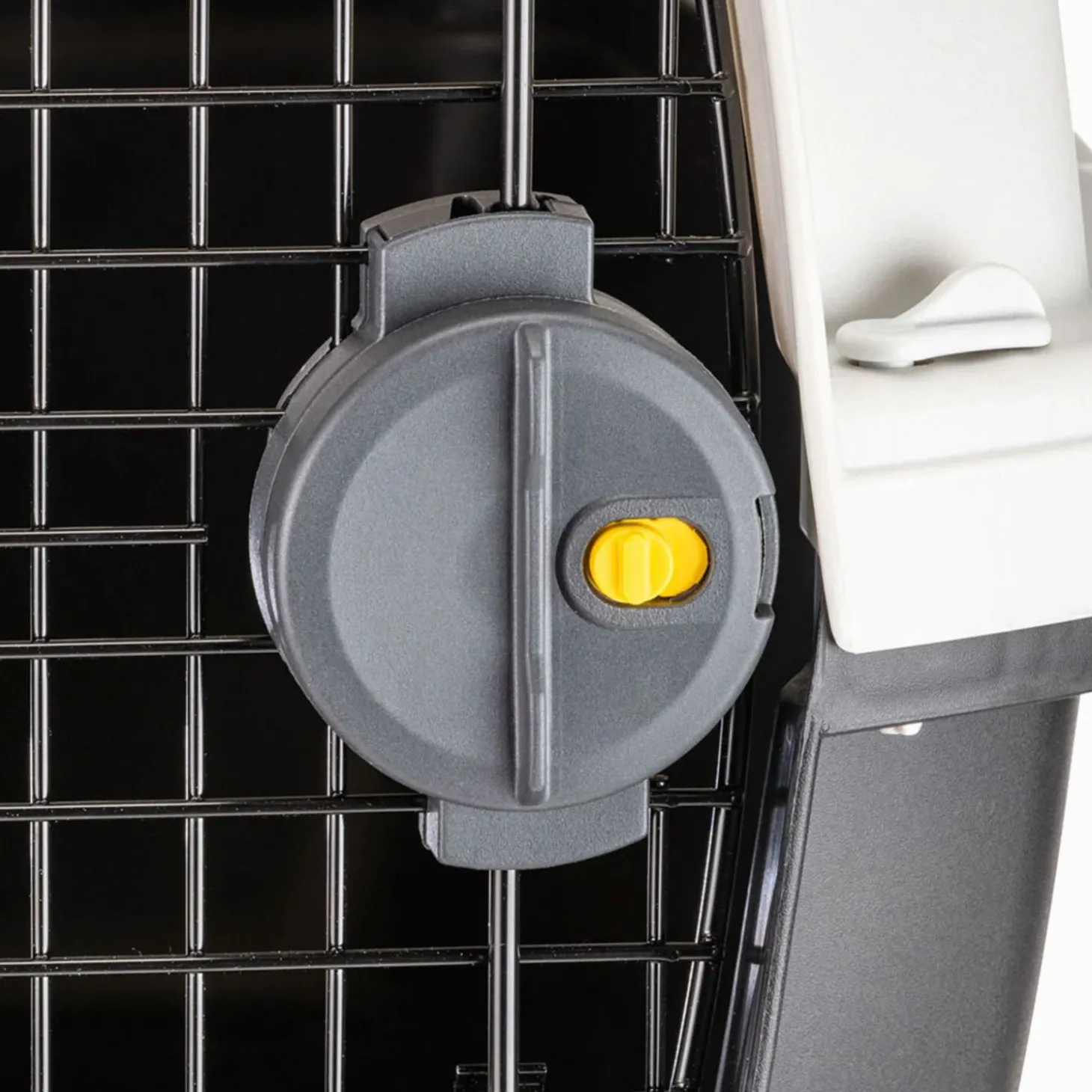 Solid and robust, they are made of thermoplastic resin and equipped with a plastic-coated iron door with a 19 x 19 mm mesh for greater safety. Clipper carriers are equipped with an extremely reliable 2-way lock, which prevents unpleasant accidental openings during travel. By turning the knob, two fixing points are in fact activated which anchor the door to the main structure of the pet carrier.