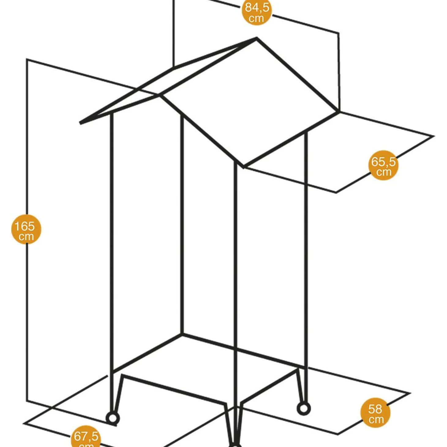 De Volière Hemmy heeft een afmeting van 84,5 x 65,5 x 165 cm.