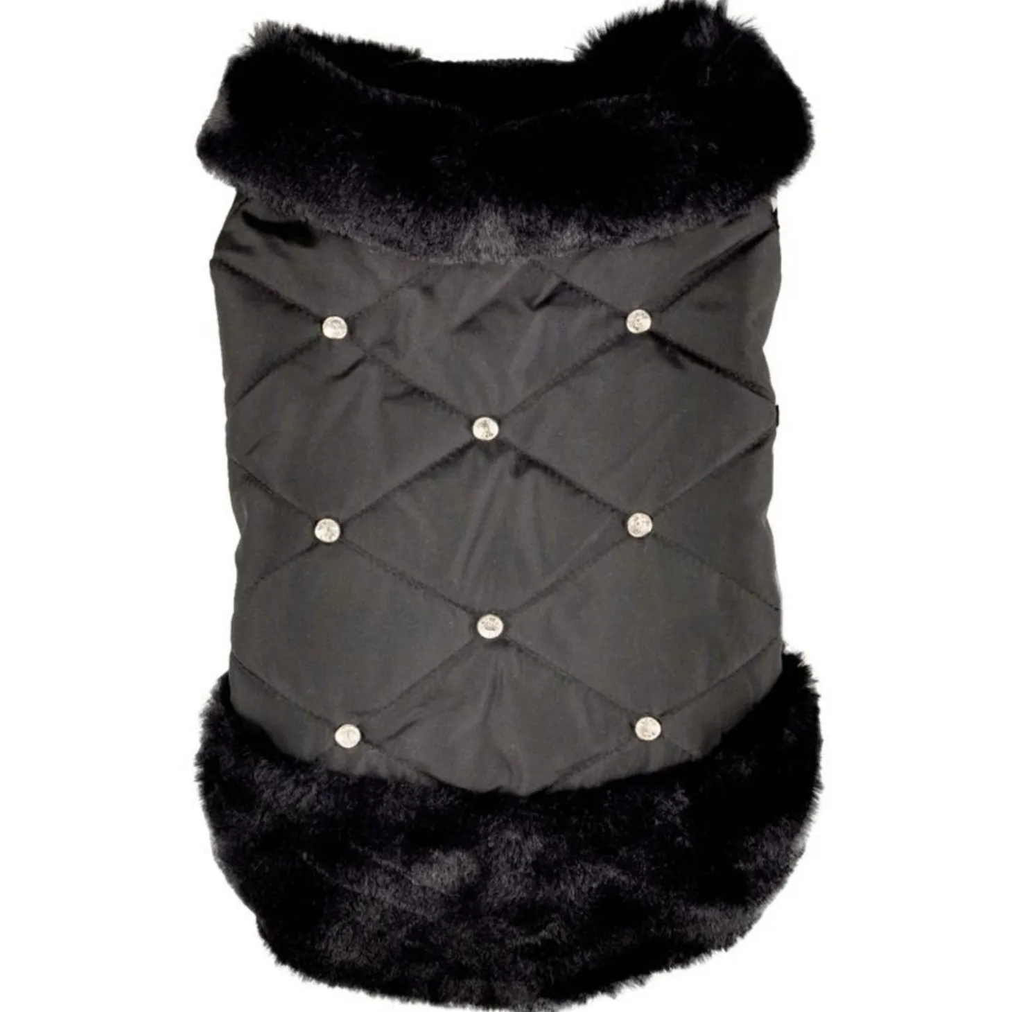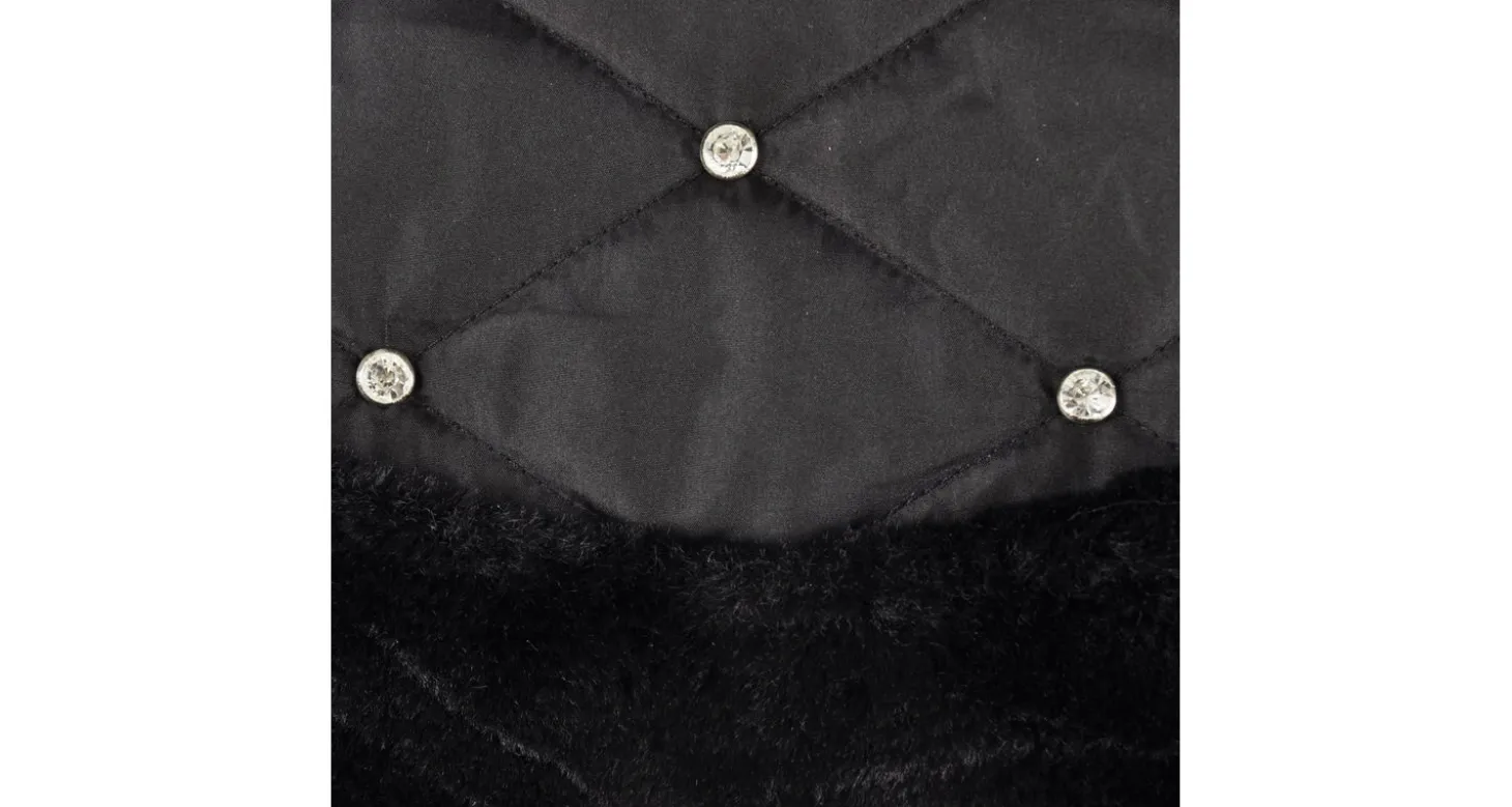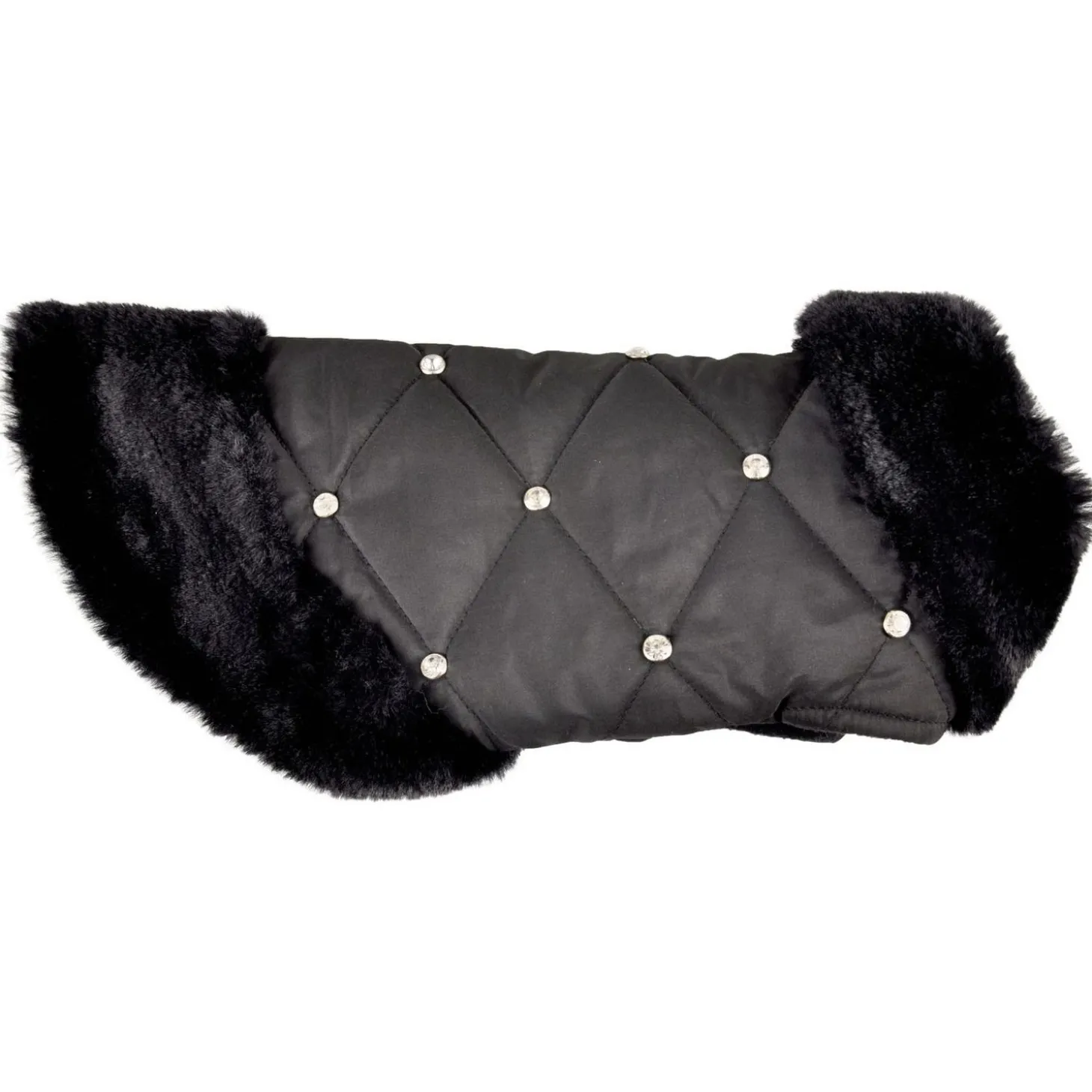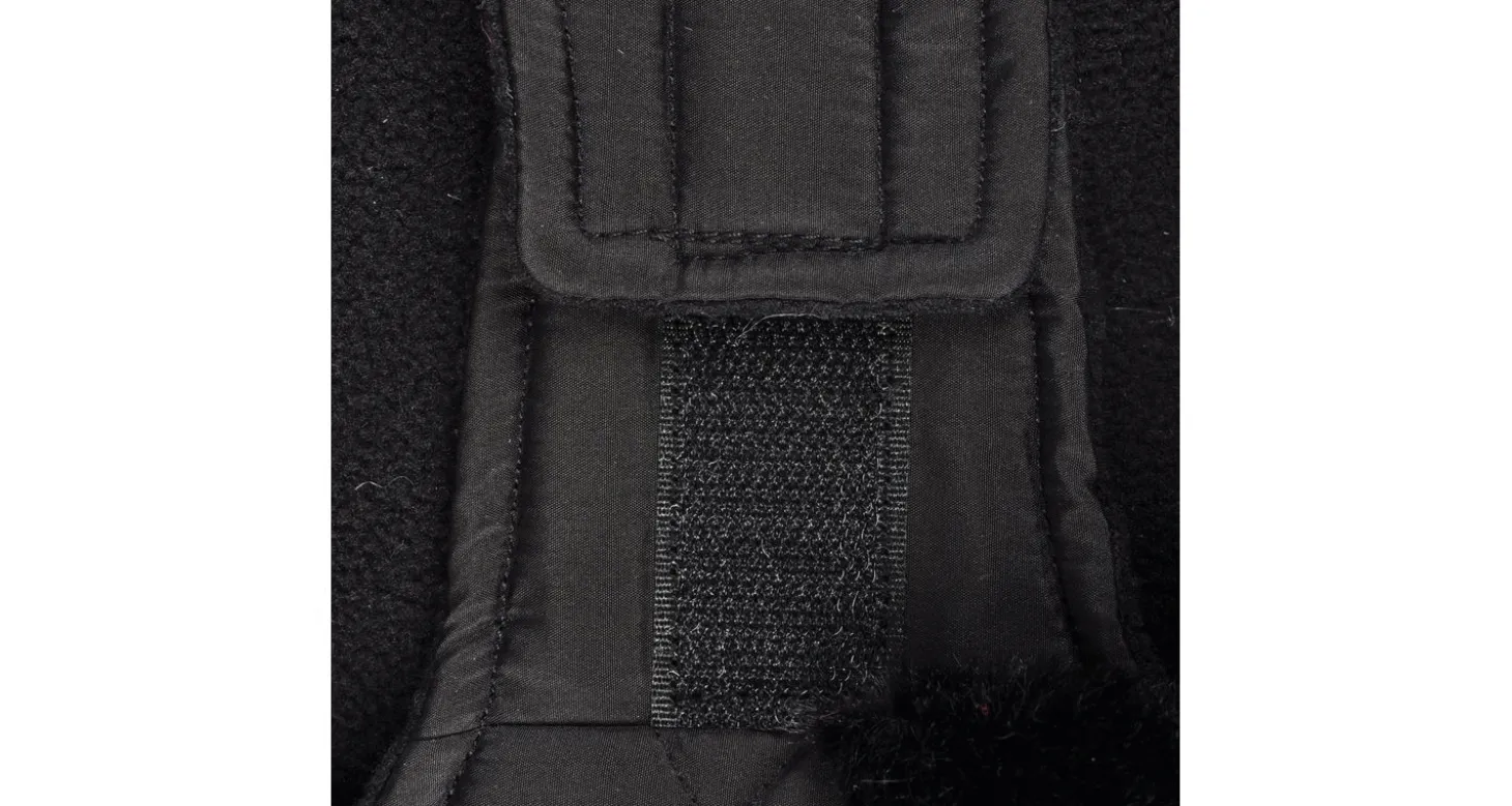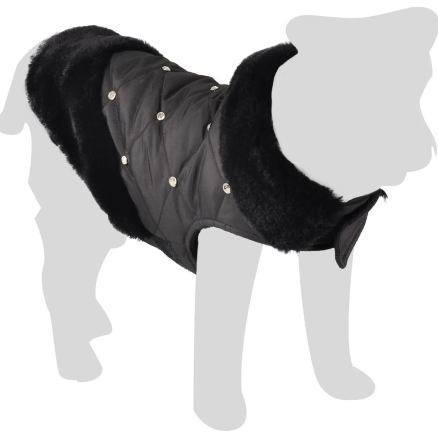 De jas is doorstikt en is afgewerkt met fleece, voor extra warmte en comfort. Je maakt de jas eenvoudig vast met klittenband bij de buik en nek. Bij de nek zit een kleine opening waar je de riem doorheen kunt doen. De Coco is voorzien van nepbont bij de kraag en de achterzijde en is versierd met strass-steentjes, voor een luxe uitstraling. De jas kan op 30 graden gewassen worden.