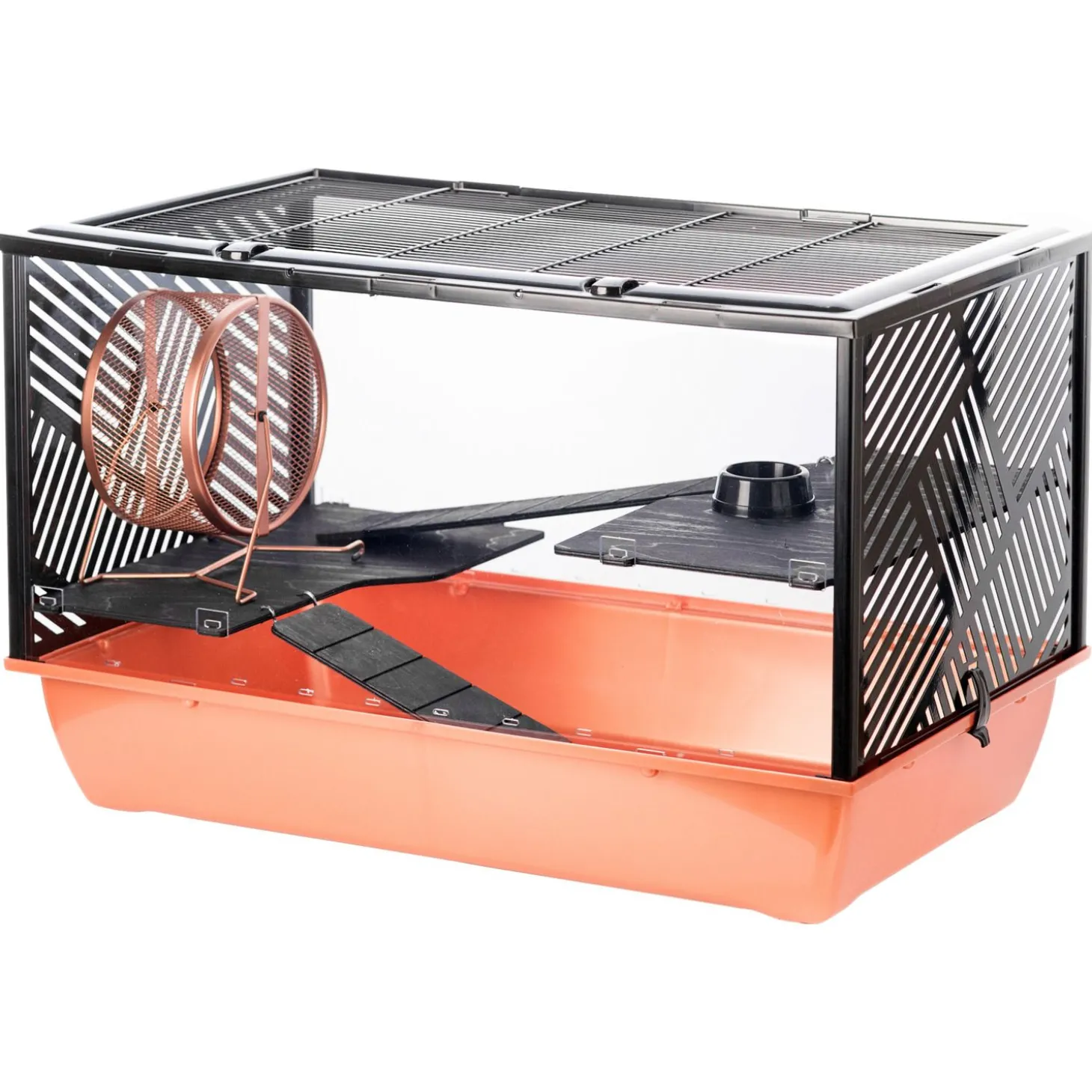 Knaagdierenkooi Zeus is een leuke zwart met oranje hamsterkooi. Deze kooi wordt geleverd met voerbak, drinkfles en een looprad. De kooi kan aan de lange zijdes open gemaakt worden. Ook is de kooi eenvoudig van de bak af te halen waardoor het snel kan worden verschoond.