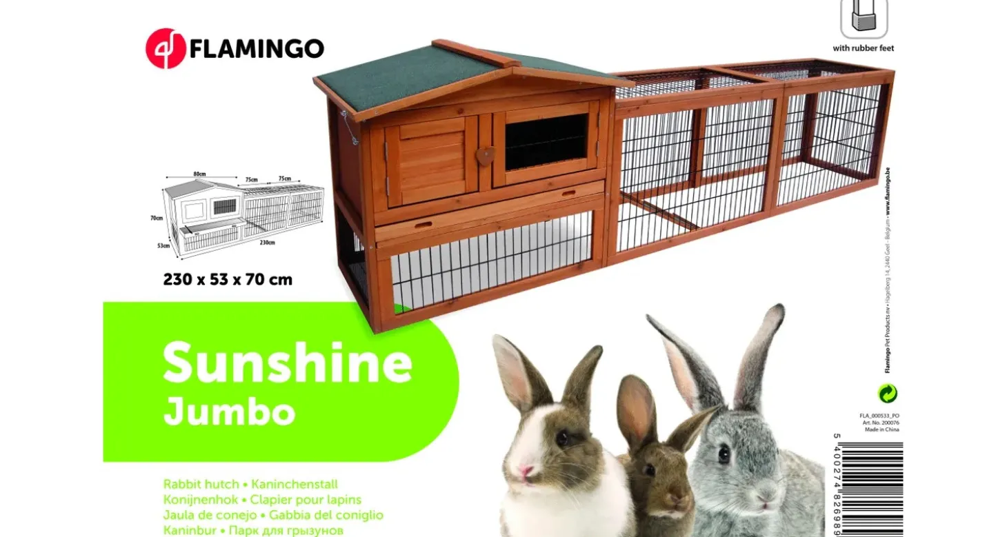 Elke konijn verdient een mooi huisje om in te wonen. Het Konijnenhok met ren Sunshine Jumbo van Flamingo is zo een mooi huisje!