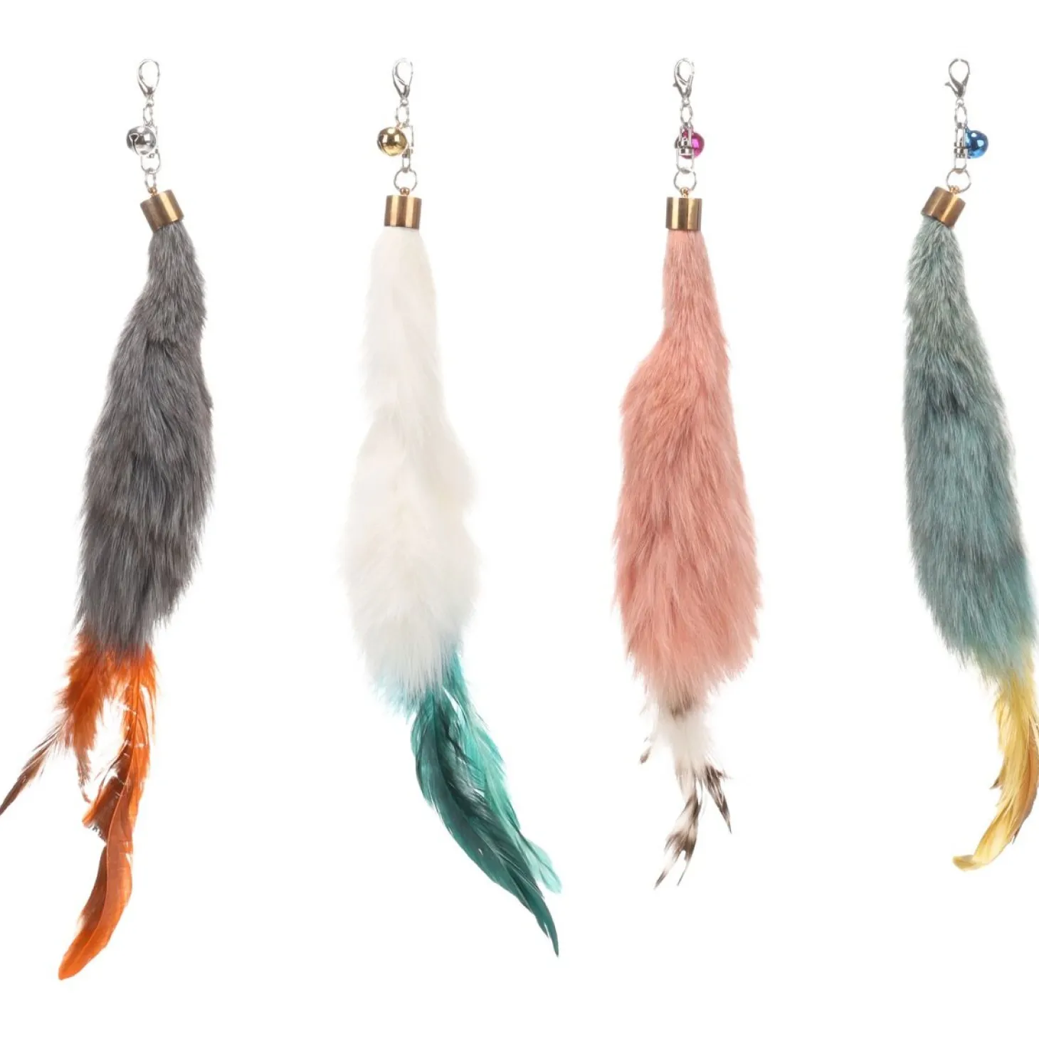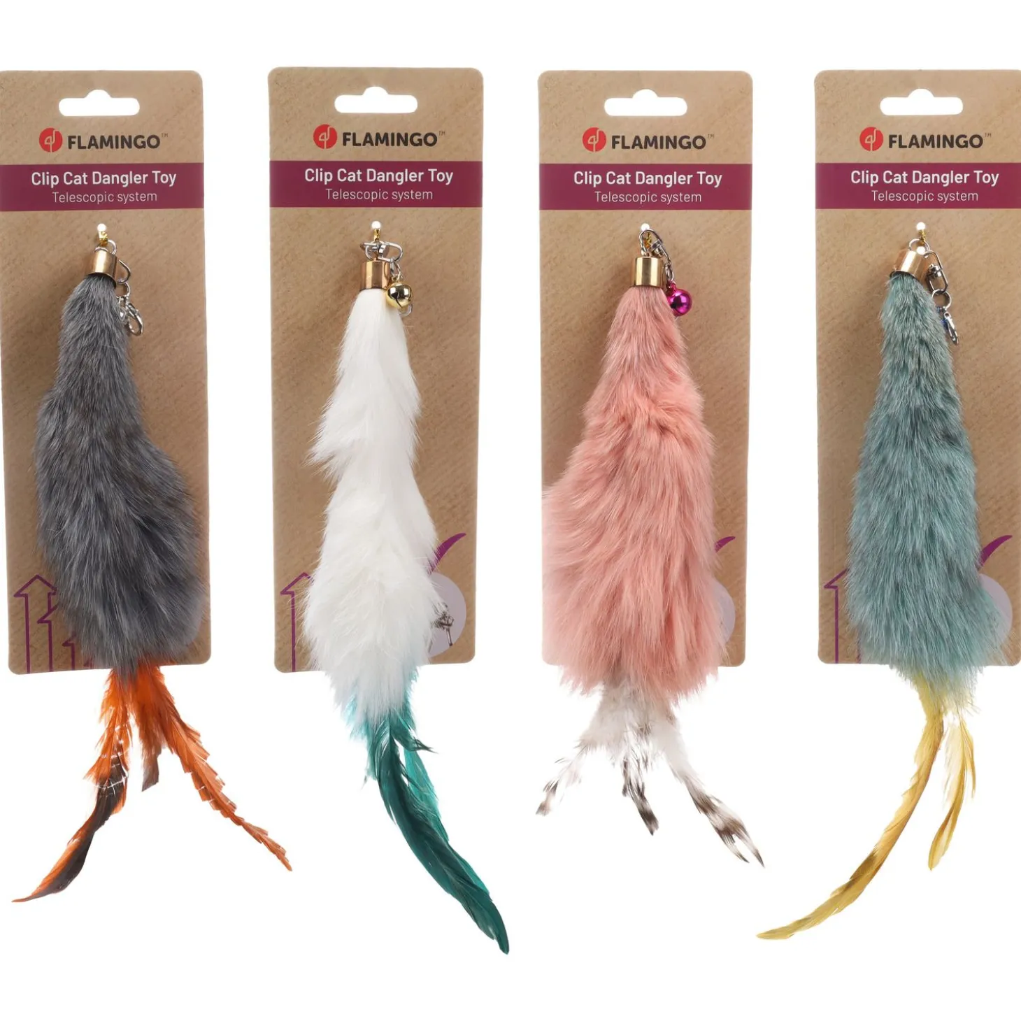 Deze handige clip-on speeltjes geven je kattenhengel een tweede leven! De grote pluizige staart met rinkelend kattenbelletje en mix van verschillende veren zorgen voor nieuwe uitdagingen en blijven je kat urenlang boeien. Door regelmatig te wisselen van speeltje houdt je kat interesse in het spel.