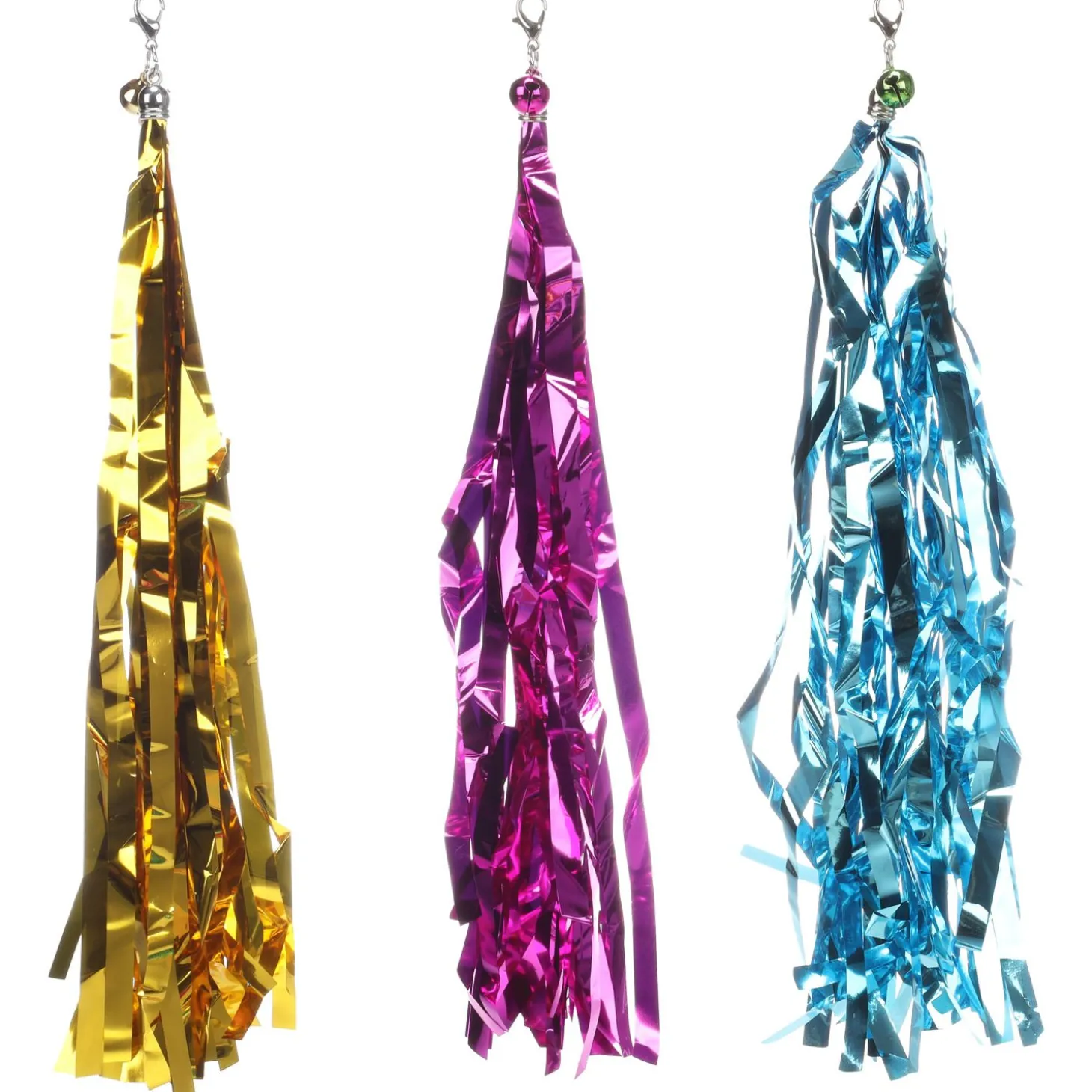 Deze handige clip-on speeltjes geven je kattenhengel een tweede leven! De glinsterende metallic slierten gecombineerd met een rinkelend kattenbelletje zorgen voor nieuwe uitdagingen en blijven je kat urenlang boeien. Het reflecterende materiaal vangt licht en creëert extra visuele prikkels die katten onweerstaanbaar vinden.
