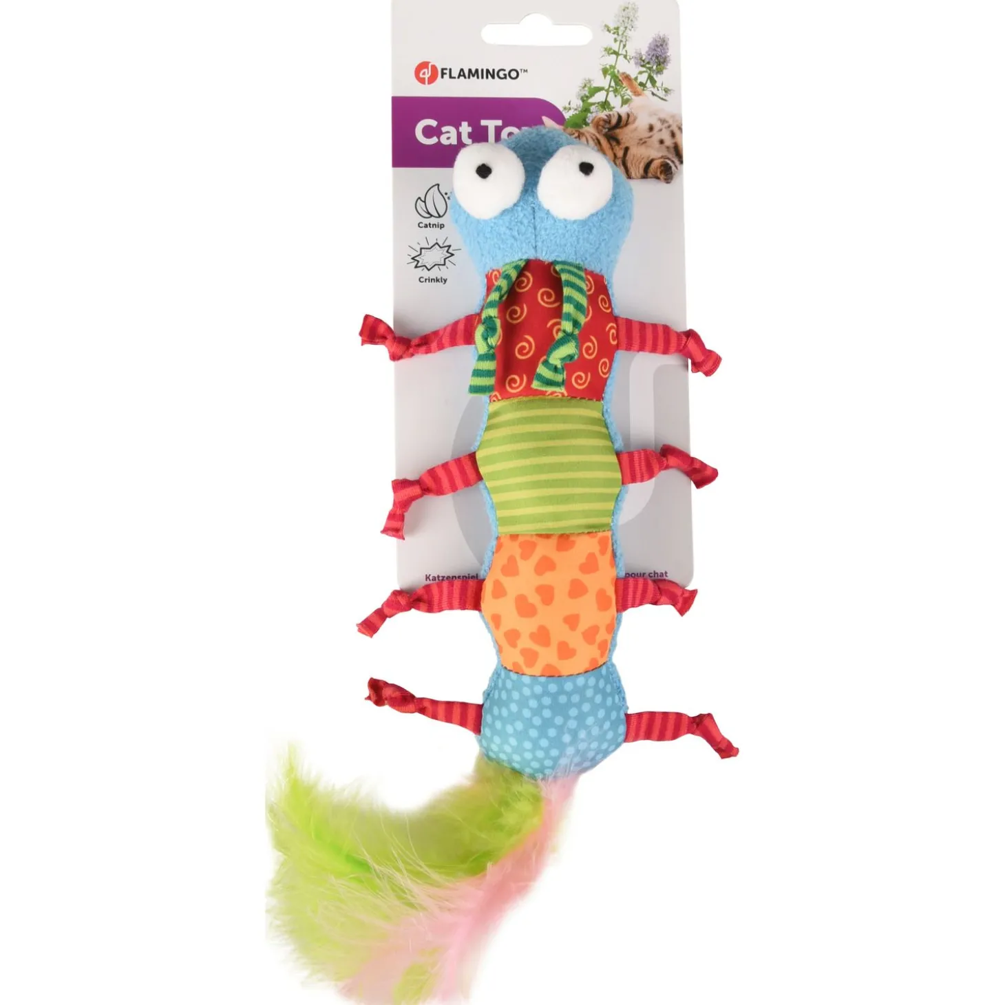 Deze leuke knuffel Yowly van Flamingo is vrolijk, kleurvol speelgoed waar je kat mee kan spelen. De knuffel bevat catnip en een leuk knisperend geluid. Je hoeft dus niet raar op te kijken als jouw kat gekke sprongen maakt door de kamer heen!