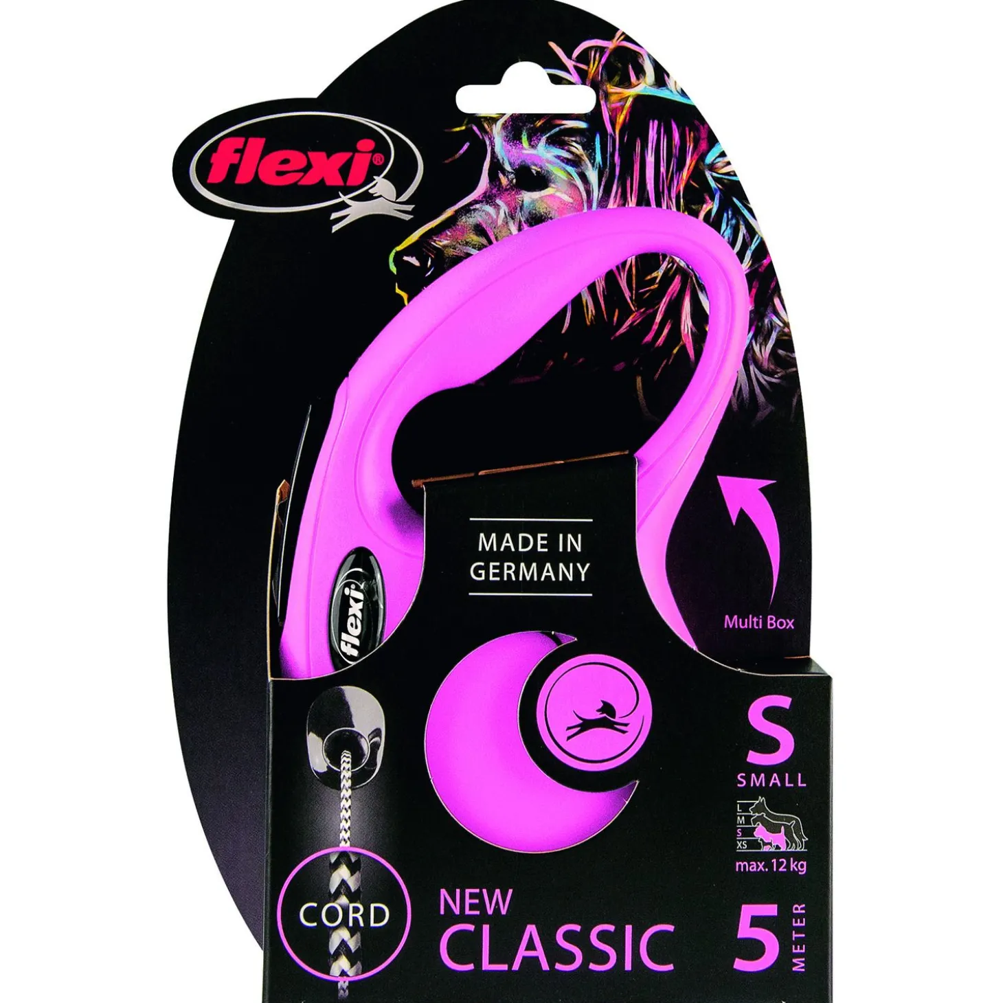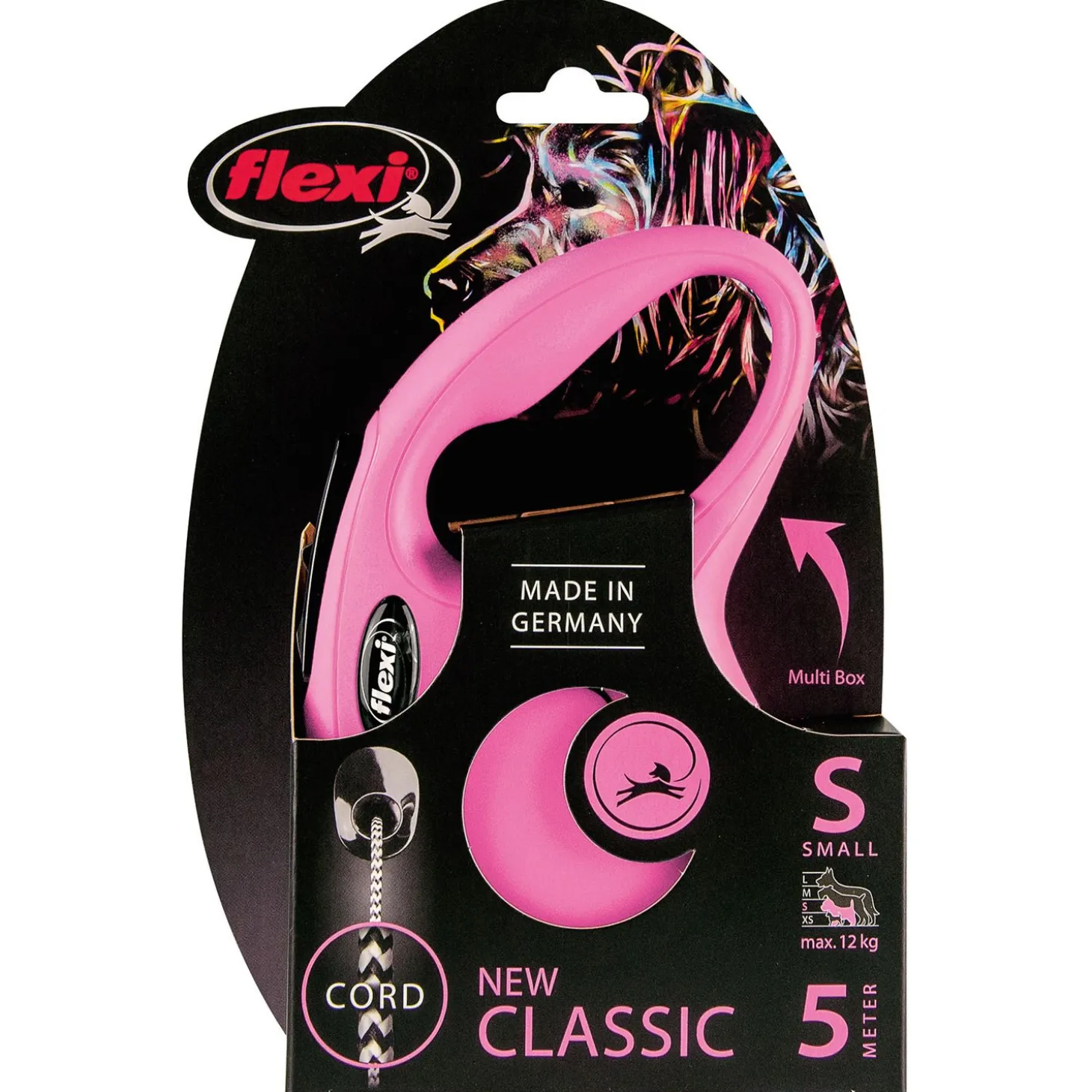 Het is mogelijk om de Flexi New Classic Cord S uit te breiden met de Flexi Multi Box (poepzakjes- of snackhouder) of het LED Lighting System (LED-lampje) (los te koop). De Flexi New Classic is verkrijgbaar in de maten XS, S, M en L.