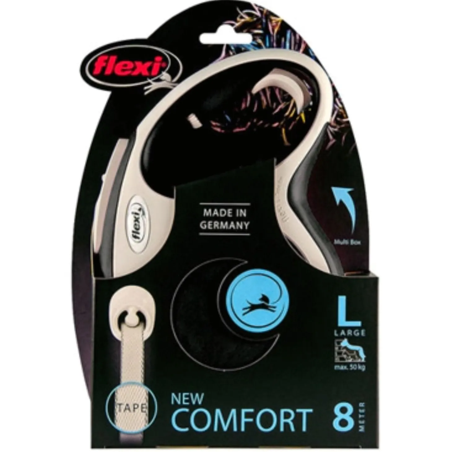 Bij Flexi kan je kiezen tussen lijnen met een koord en lijnen met tape. Het is een persoonlijke voorkeur welke variant je het fijnst vindt. In principe zijn beide soorten even sterk en veilig om te gebruiken. De New Comfort Tape bevat een tape.